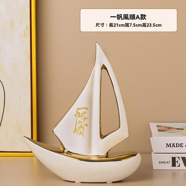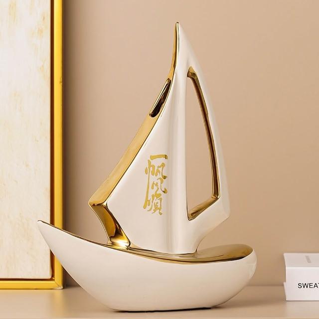 Eco森活輕奢簡約陶瓷帆船擺件 一帆風順擺件 擺設 紀念品 輕奢擺件 桌上祝運擺飾 喬遷開業禮 櫃子裝飾品