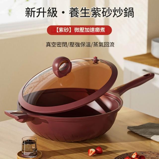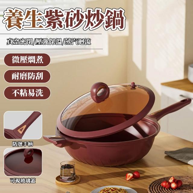 Felsted 菲仕德紫砂炒菜鍋 家用炒菜鍋 紫砂養生炒鍋 32CM不粘鍋 真空微壓鍋 陶土不粘鍋 煎炒鍋 炒菜鍋 煎炒鍋