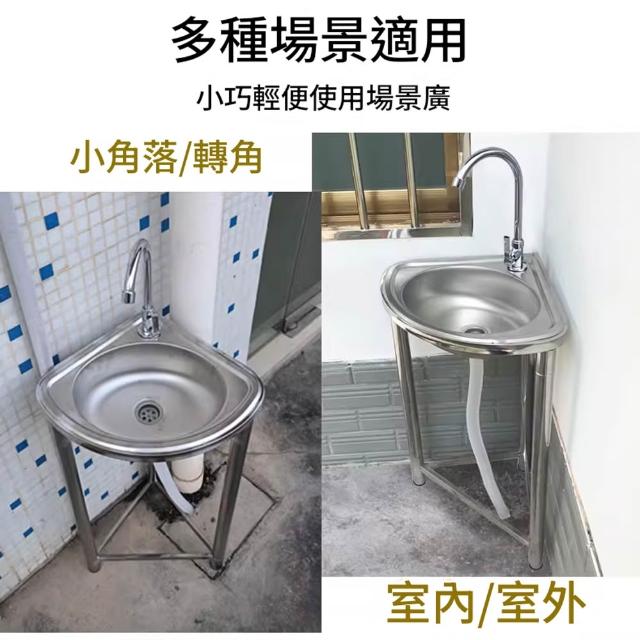 Loha 樂活家轉角落地三角洗手池 34*34*75CM 水槽 洗漱盆 陽臺水盆 三角面盆 扇形洗臉盆 不銹鋼支架盆