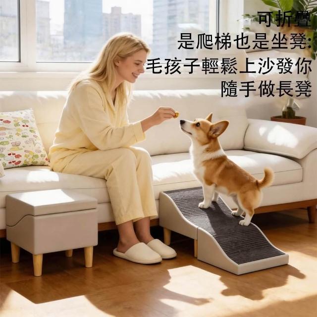 PETCOCO 波浪形寵物斜坡樓梯 寵物爬梯椅凳 寵物樓梯 上下床沙發輔助 可摺疊台階 凳梯兩用 狗狗樓梯 寵物階梯