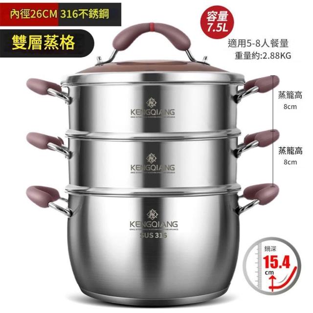 匠物 316不銹鋼蒸鍋 湯鍋 蒸籠鍋 蒸汽鍋 燉煮鍋 雙耳鍋 蒸煮兩用 鍋具 鍋子 廚具 雙層蒸鍋 三層蒸鍋