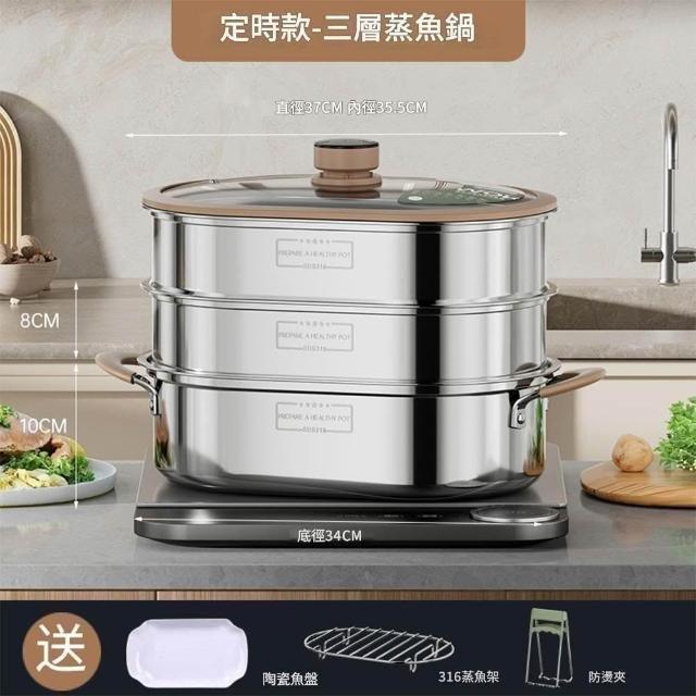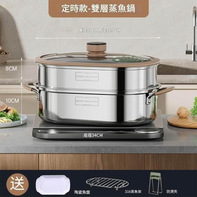匠物 316不鏽鋼蒸魚鍋 不鏽鋼蒸鍋 橢圓形蒸鍋 智能定時蒸鍋 多層蒸鍋 蒸籠鍋 蒸魚神器 蒸包子燉盅