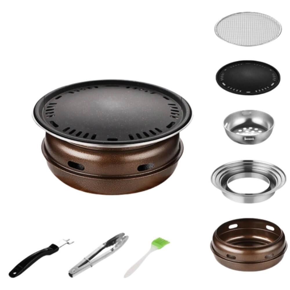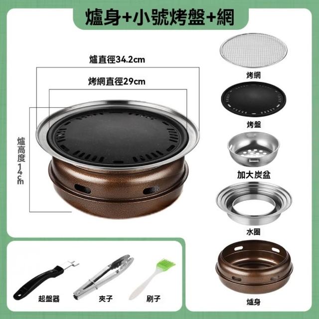 家用炭烤爐 家用圍爐 韓式木炭無煙燒烤爐(麥飯石不沾烤盤 不銹鋼烤網 烤盤 中秋節)