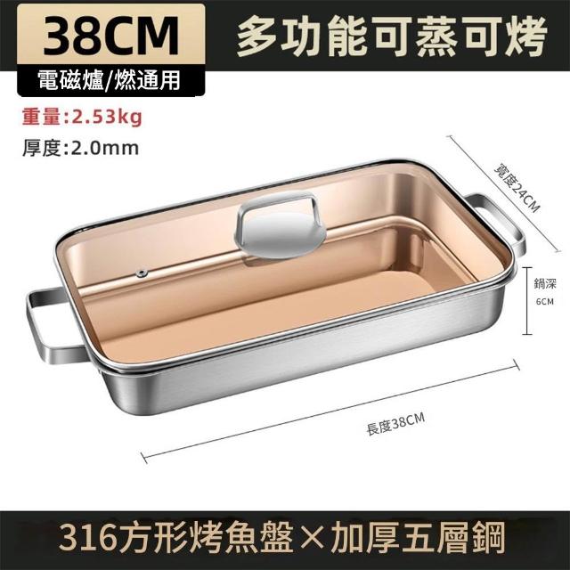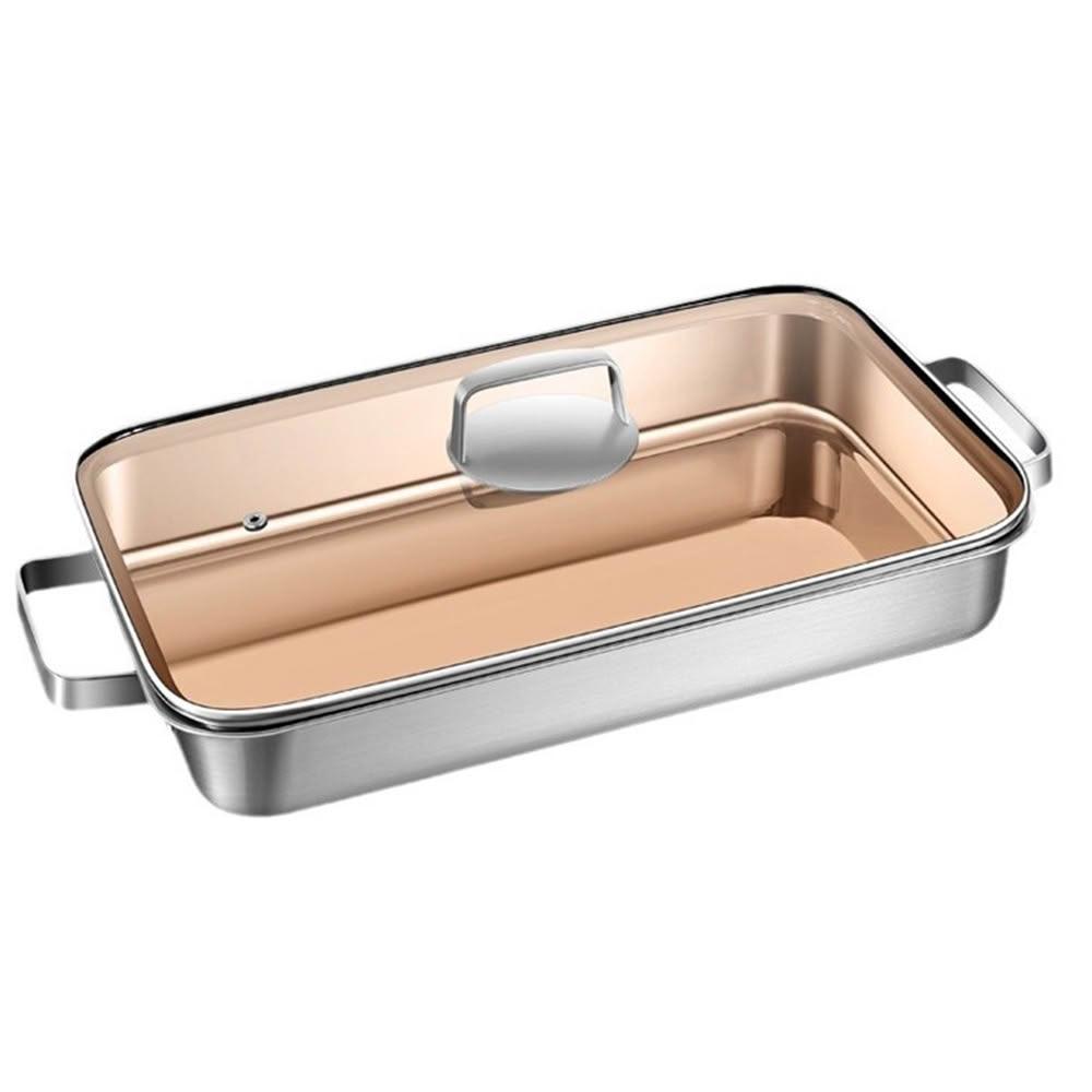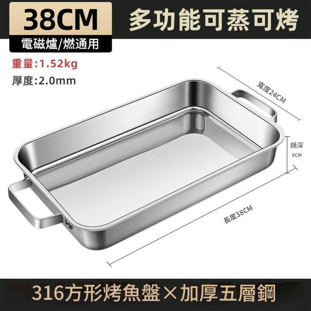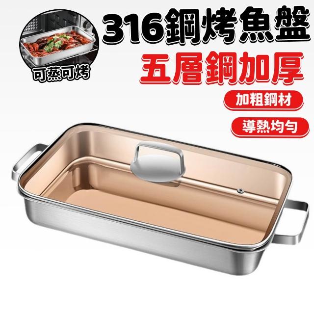 316不鏽鋼烤魚盤 長方形盤子 家用深盤 燒烤盤 可用於電磁爐 烘焙盤子 電磁爐專用