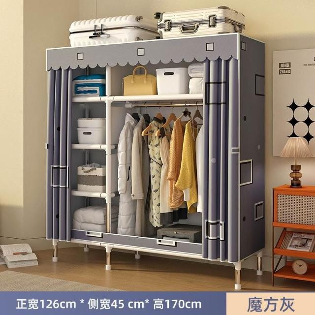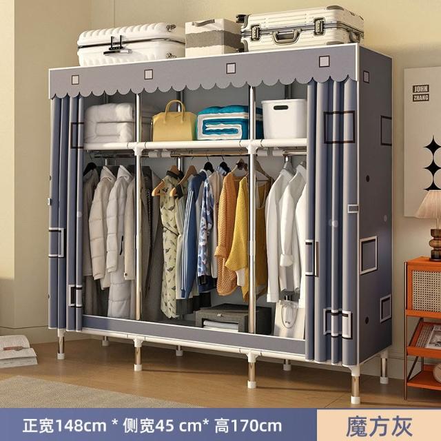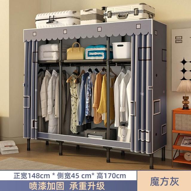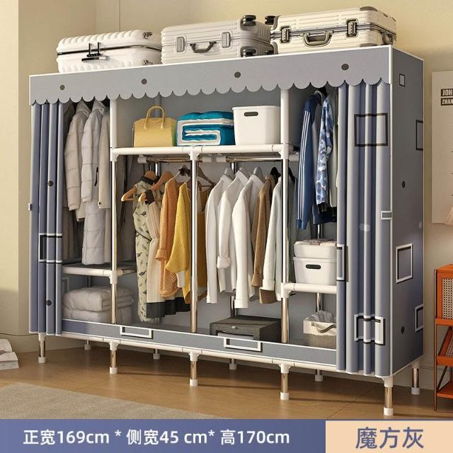 简易衣柜家用卧室钢架加粗加厚钢管组装布衣柜出租房结实耐用柜子