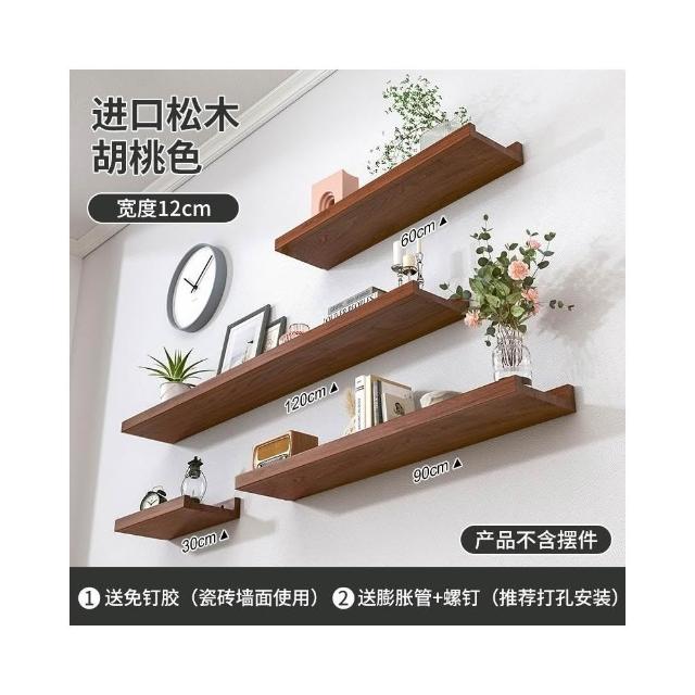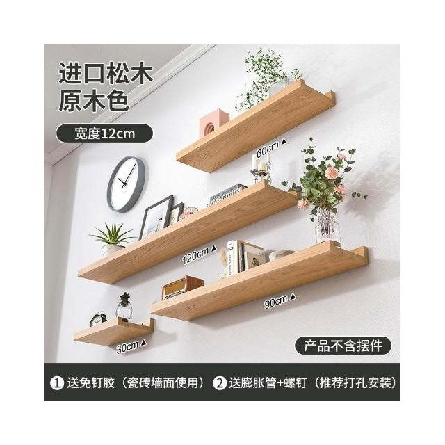 免運 含稅 牆上置物架 免打孔實木一字板置物架 客廳木板置物架 背景裝飾架子 層板牆上置物架 壁掛牆面隔板