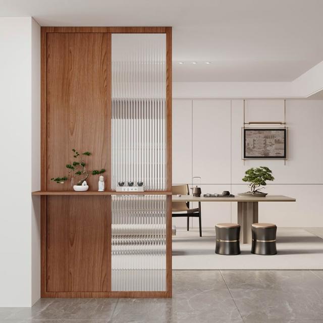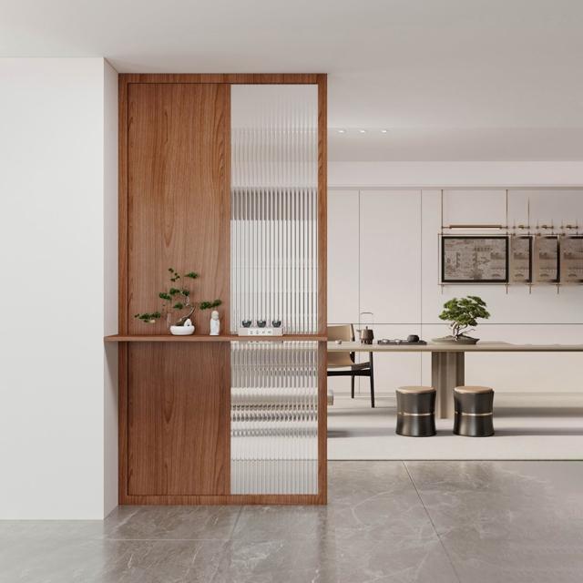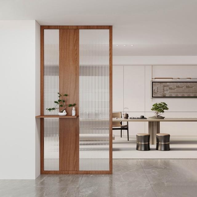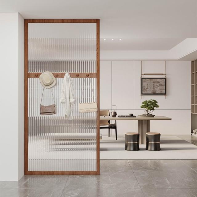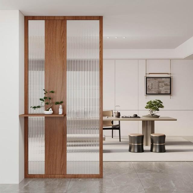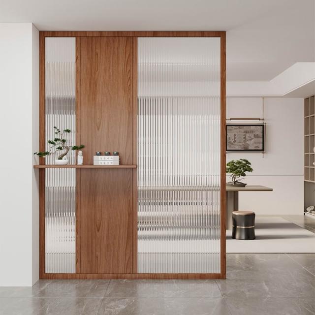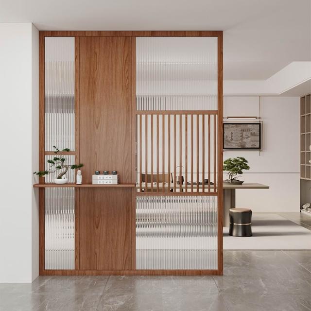 新中式長虹玻璃隔斷實木入戶玄關餐客廳格柵水紋屏風茶室裝飾遮擋