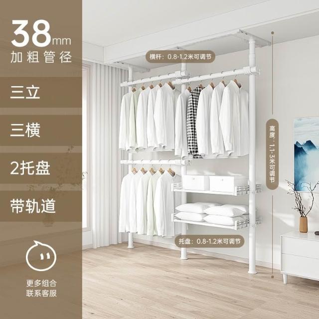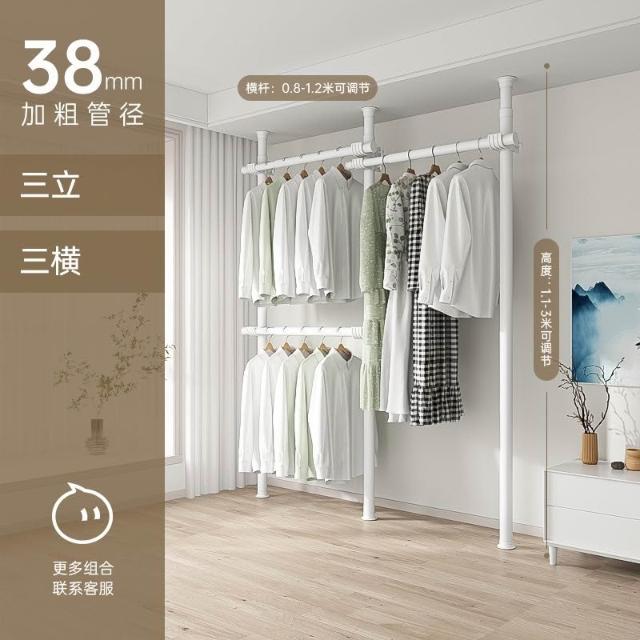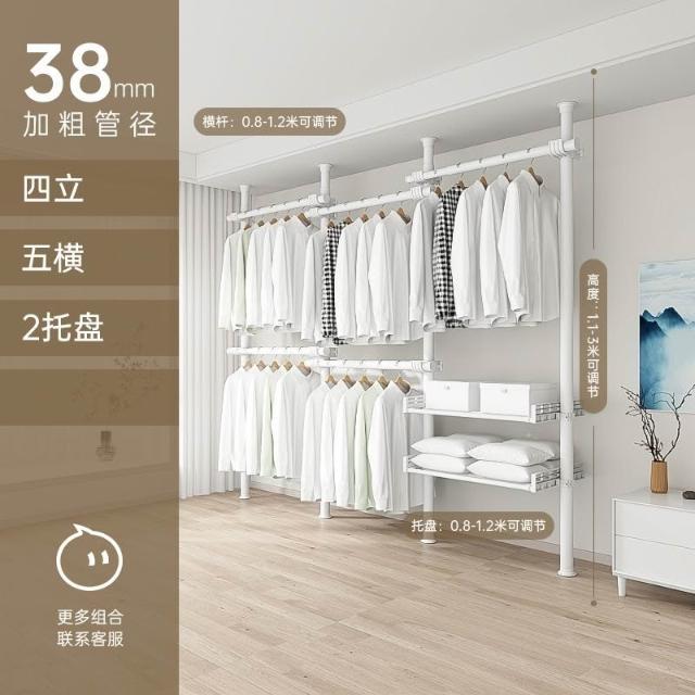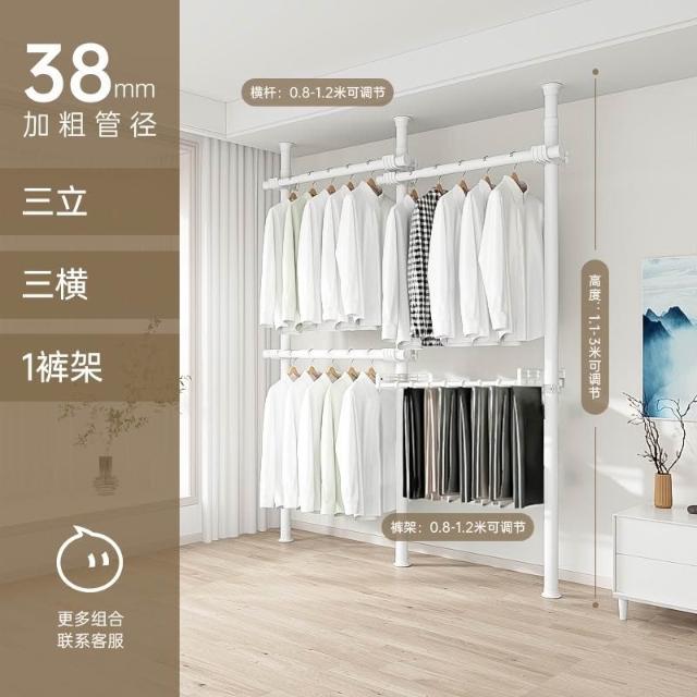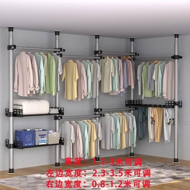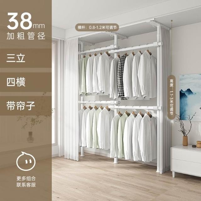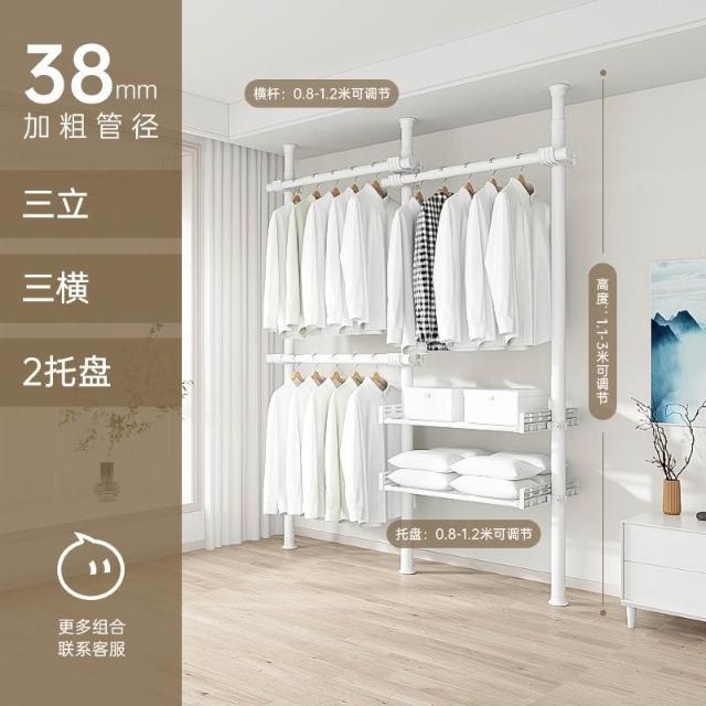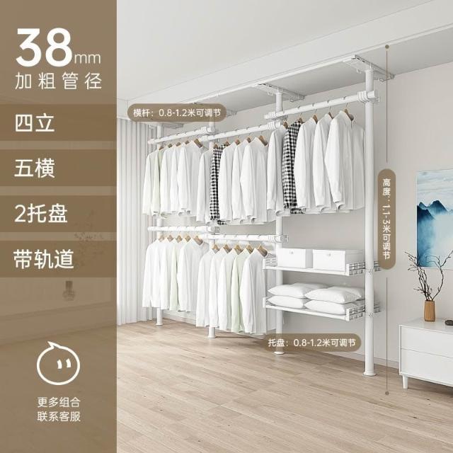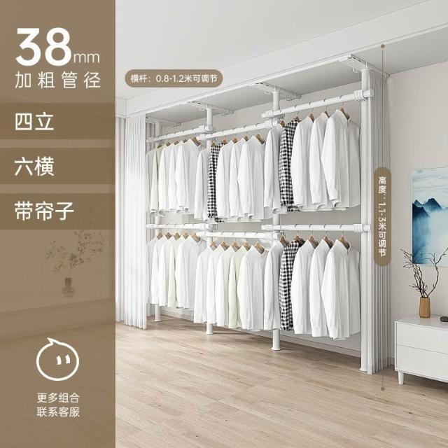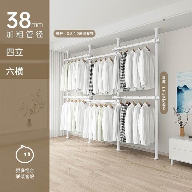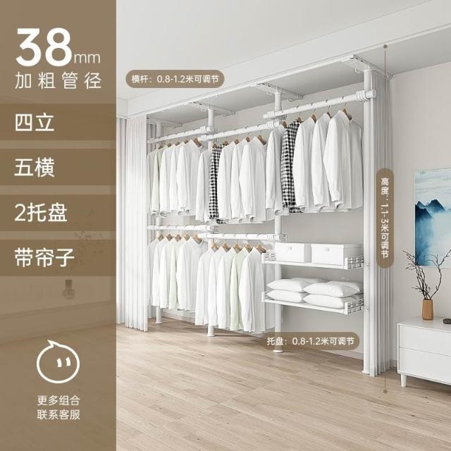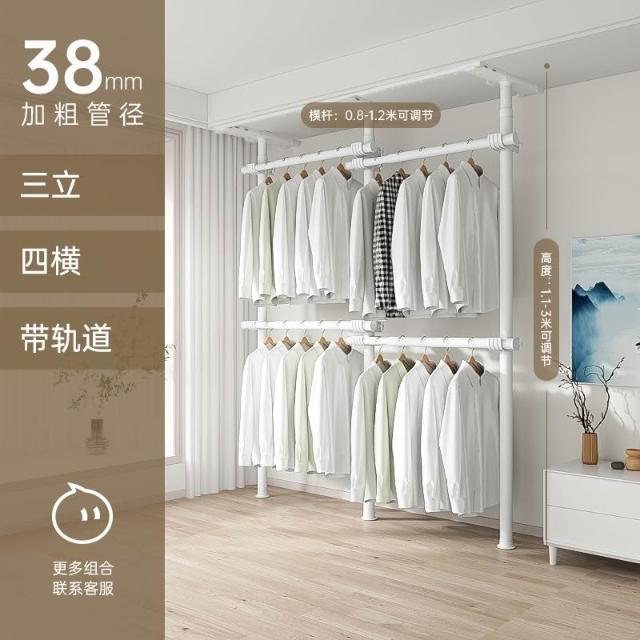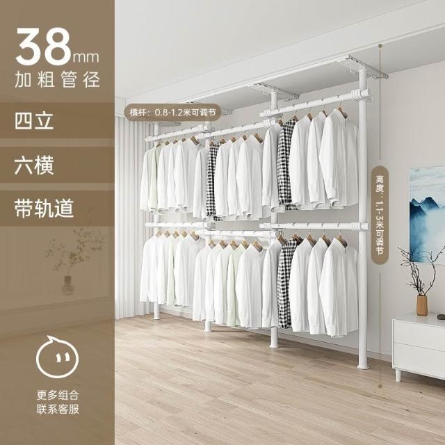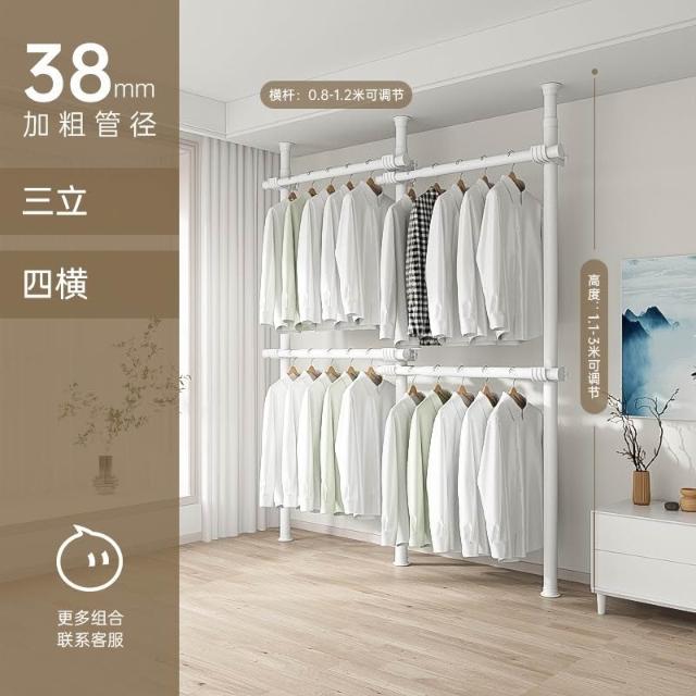 顶天立地置衣架加粗加厚落地衣帽间置物架组装衣柜开放式晾挂衣架