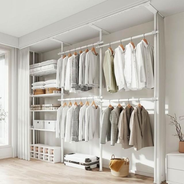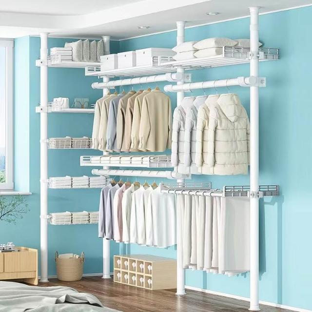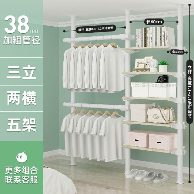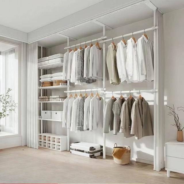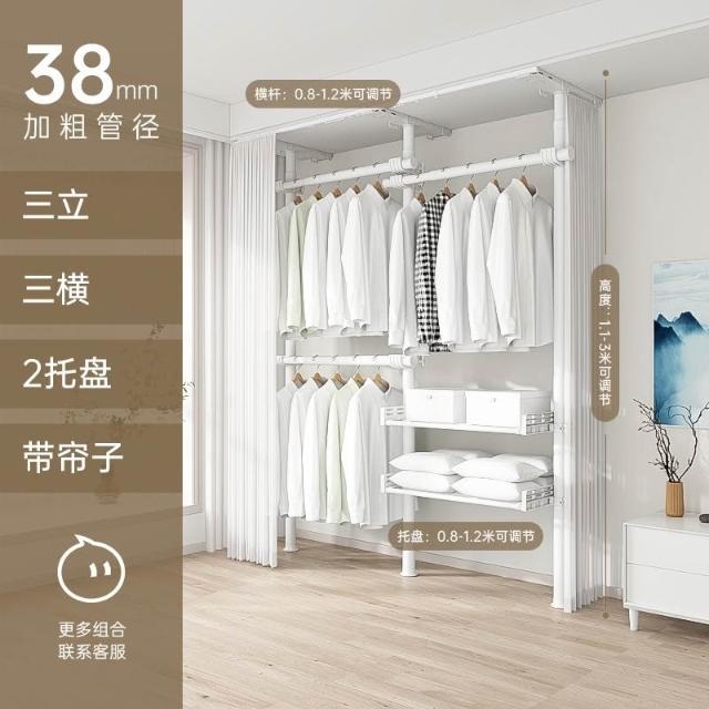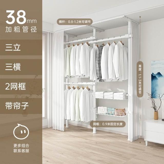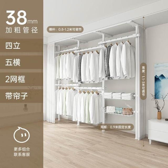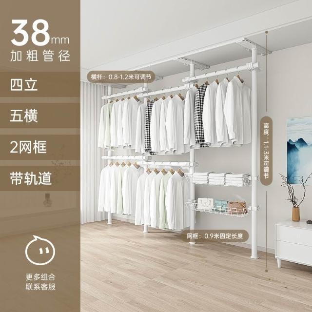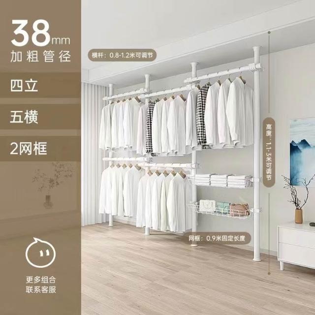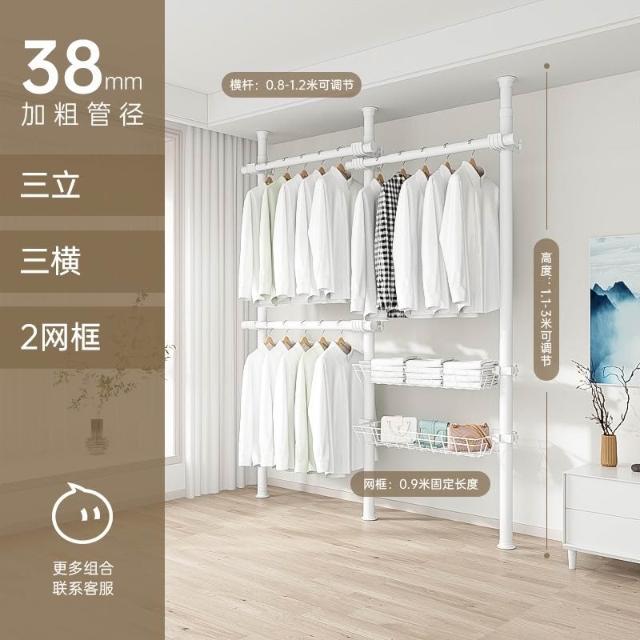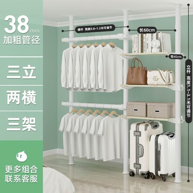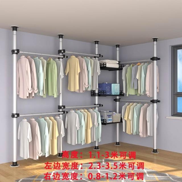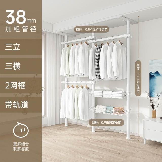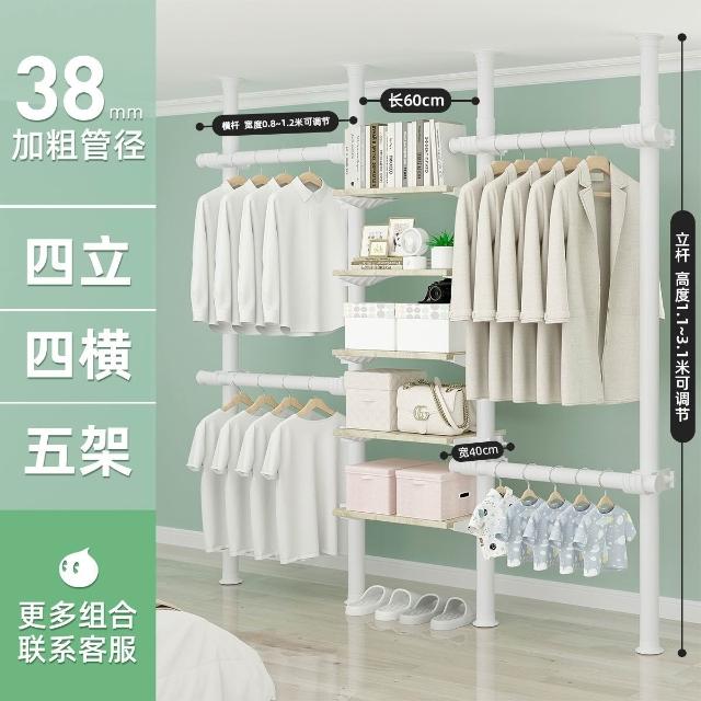顶天立地置衣架加粗加厚落地衣帽间置物架组装衣柜开放式晾挂衣架