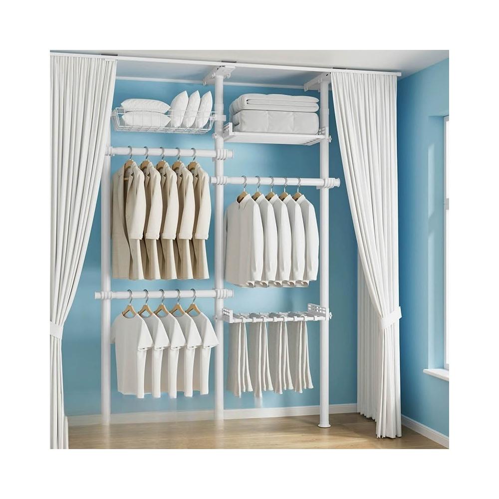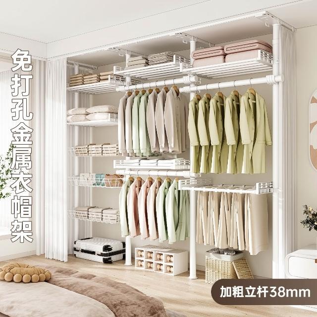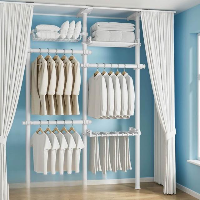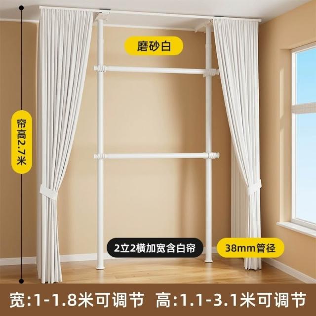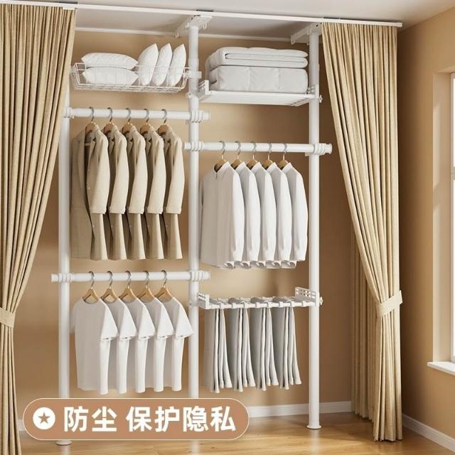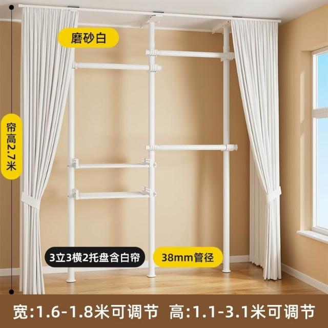 顶天立地衣架带帘子卧室金属衣柜框架简易衣帽间落地开放式挂新品