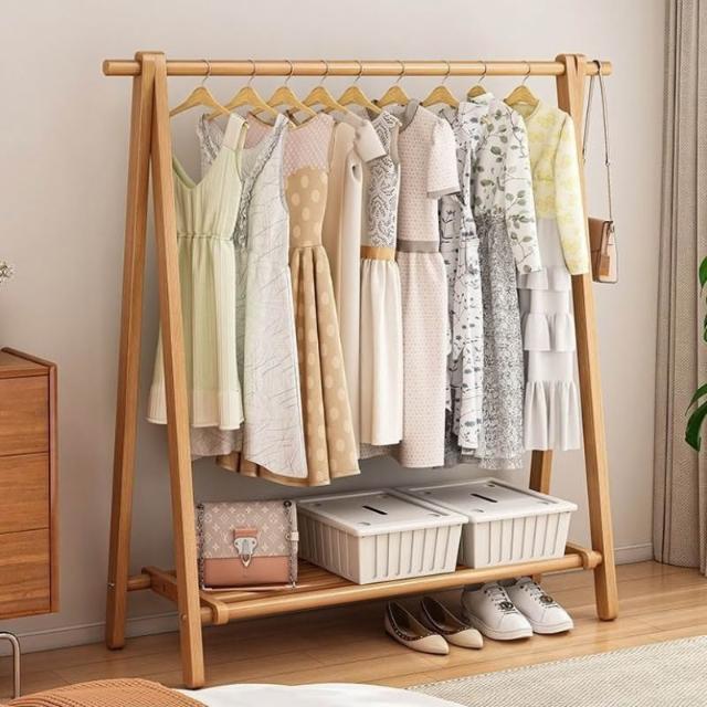 含稅免運 可開發票 實木櫸木衣架落地立式輕奢多功能收納三角衣架臥室衣帽間掛衣服