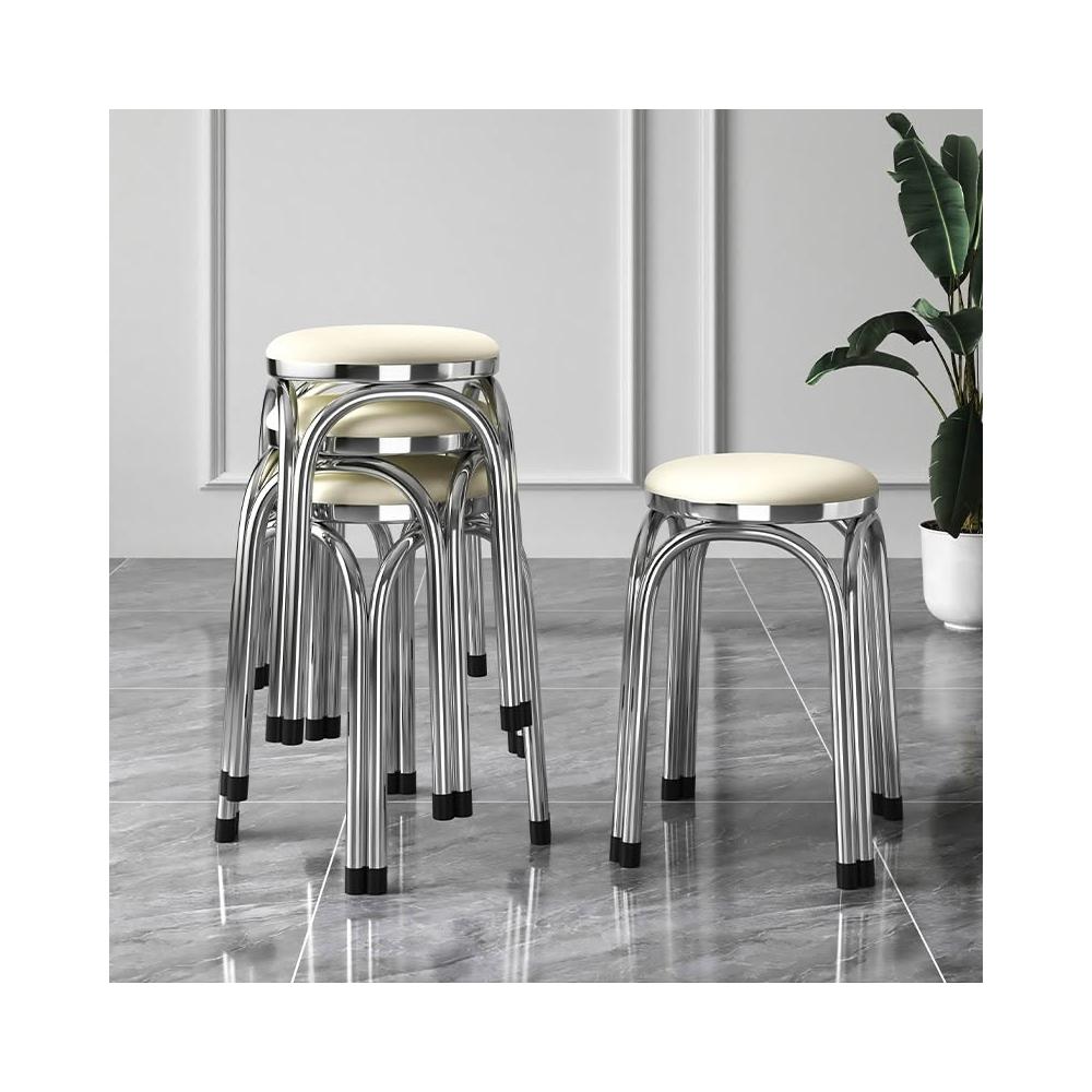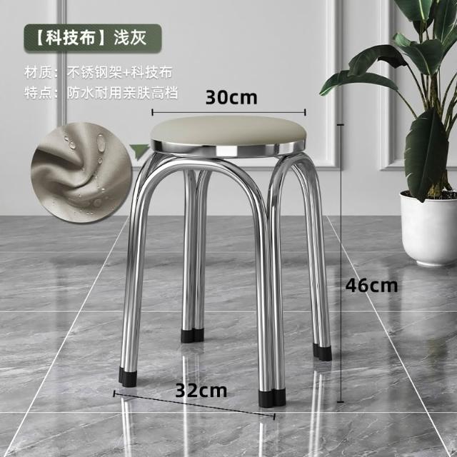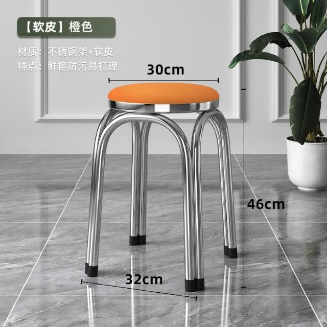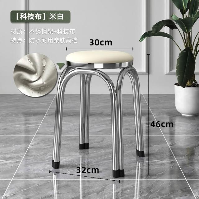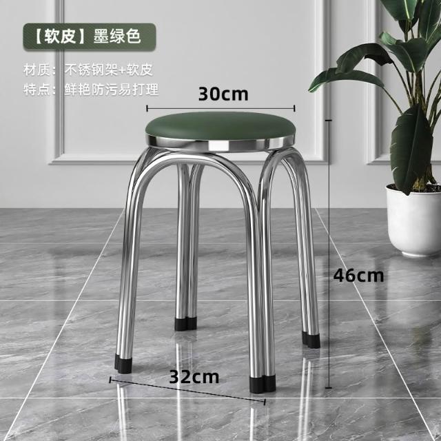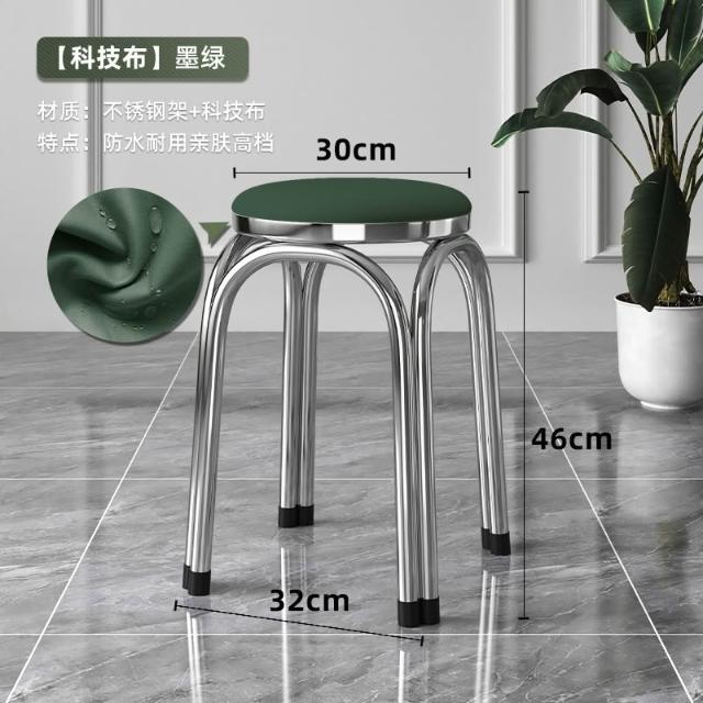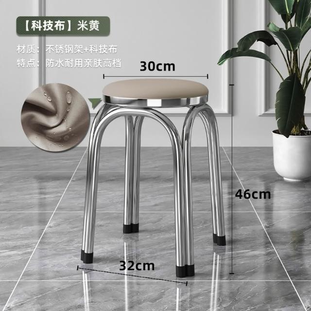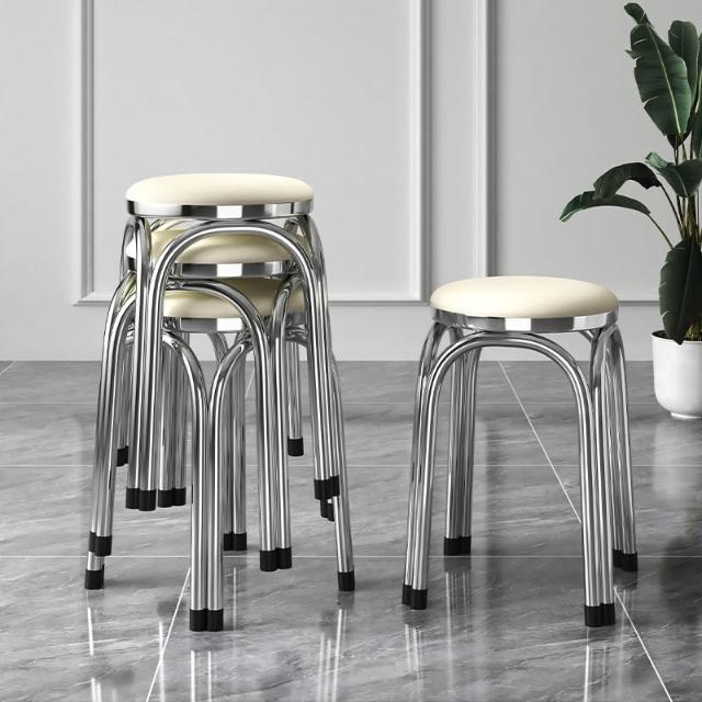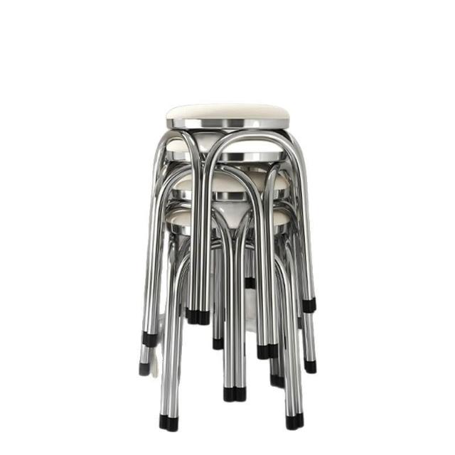 含稅運 含統編 輕奢加厚不銹鋼凳子可疊放凳子餐廳椅子家用現代簡約圓凳矮凳板凳