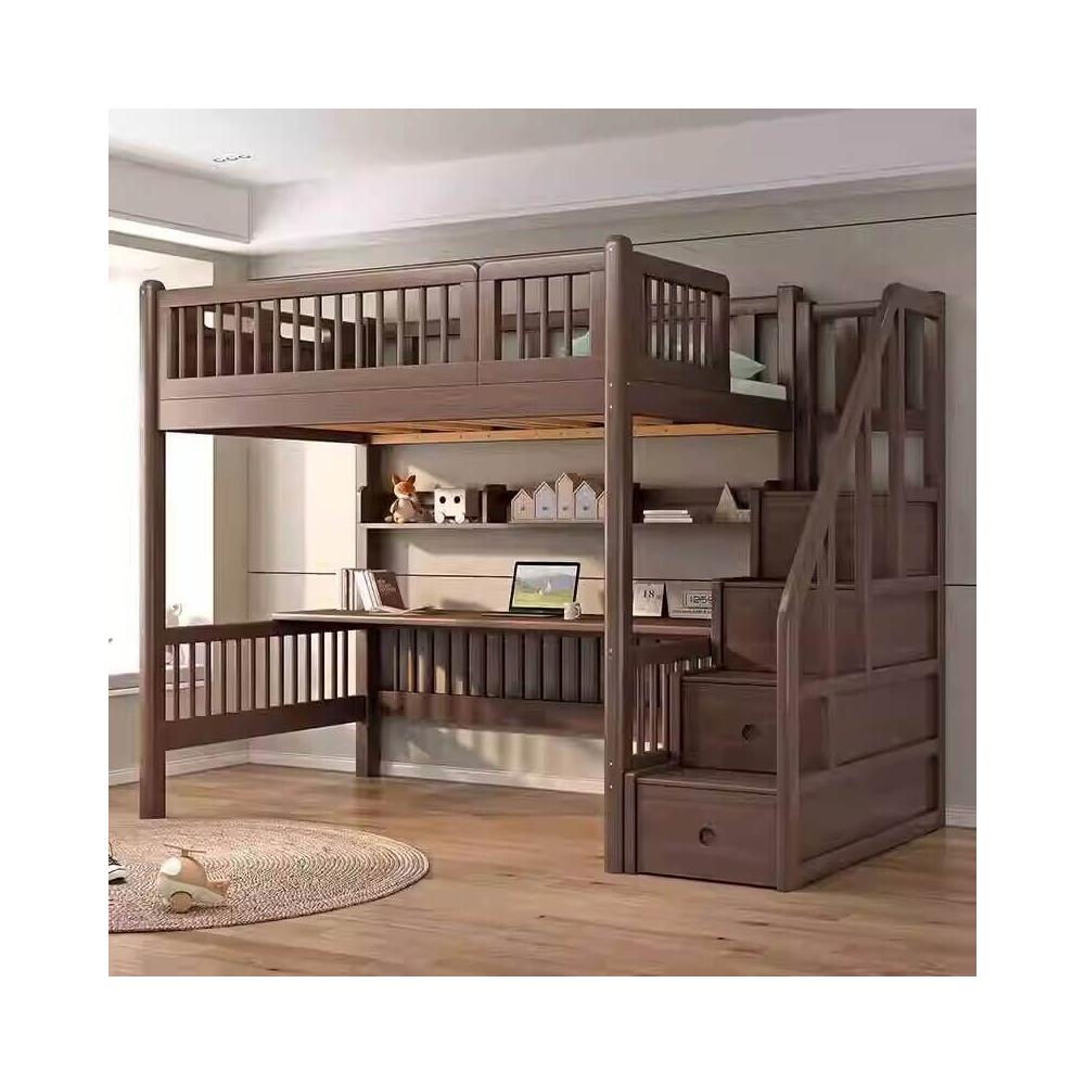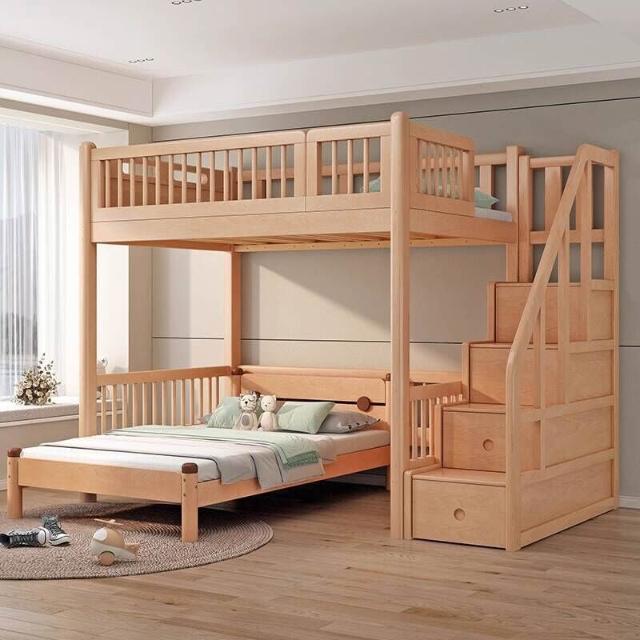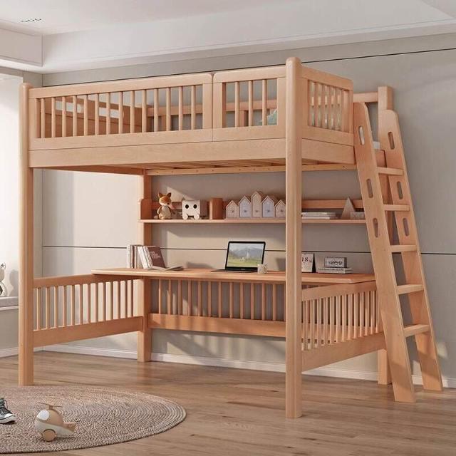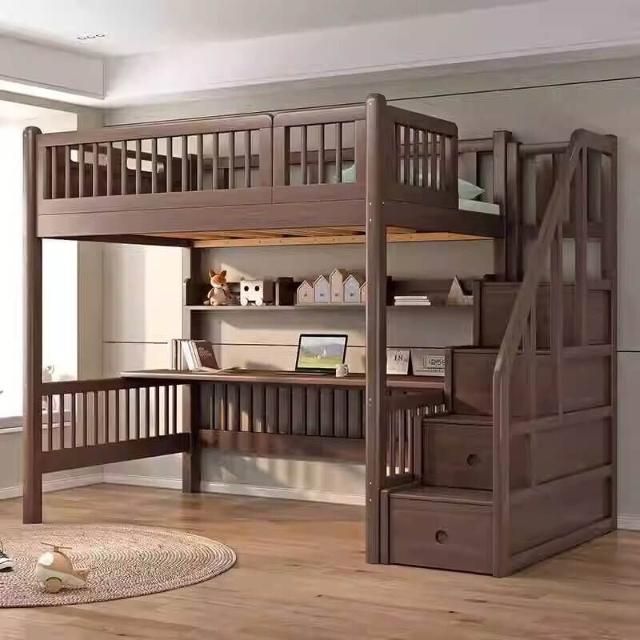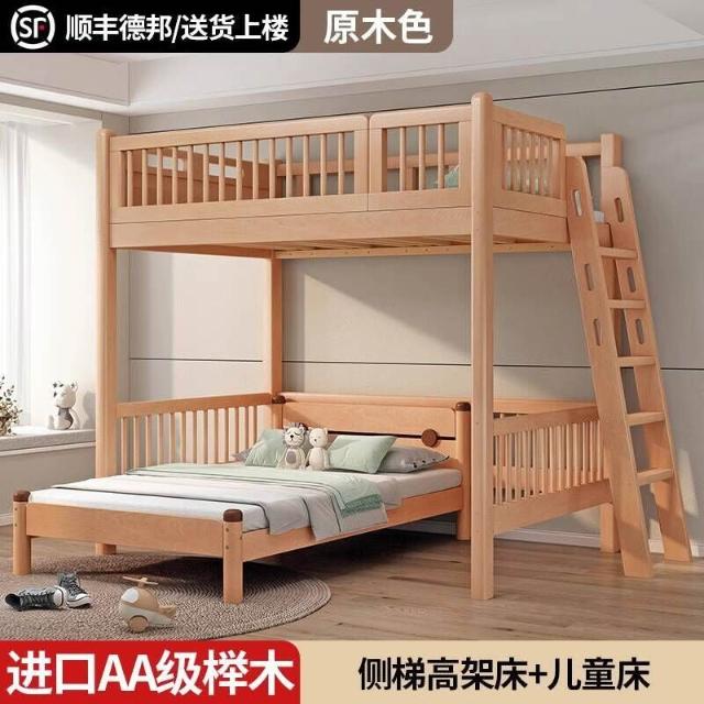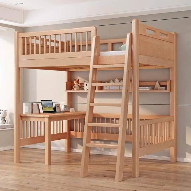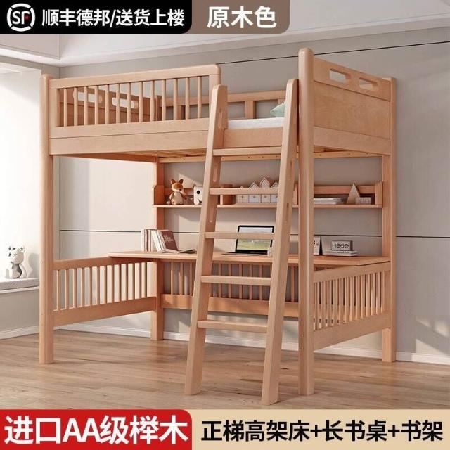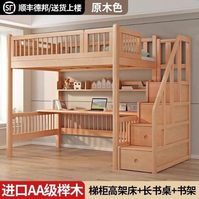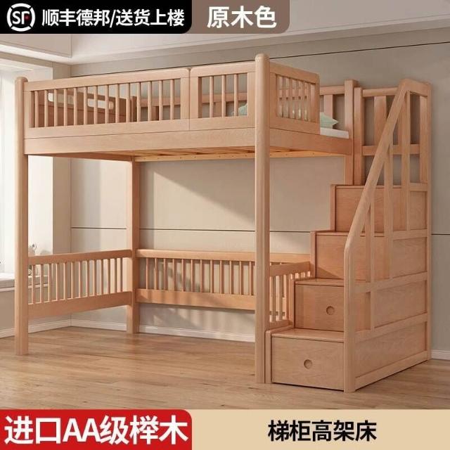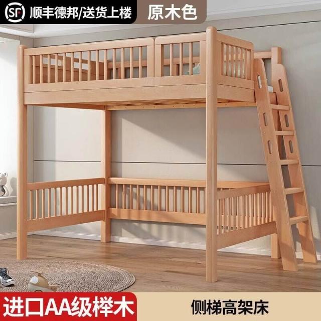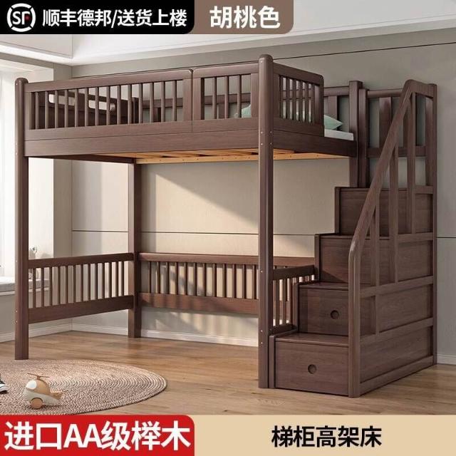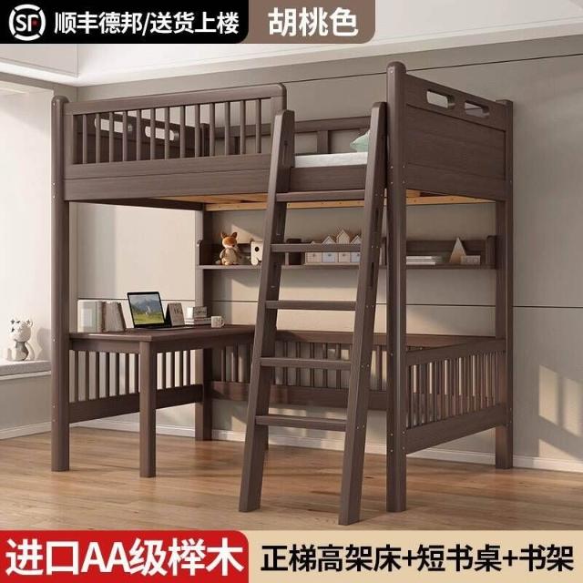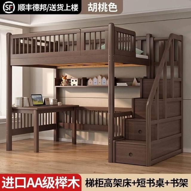 榉木架子床上下鋪交錯式上下床雙層床全實木上床下桌高架床單上層