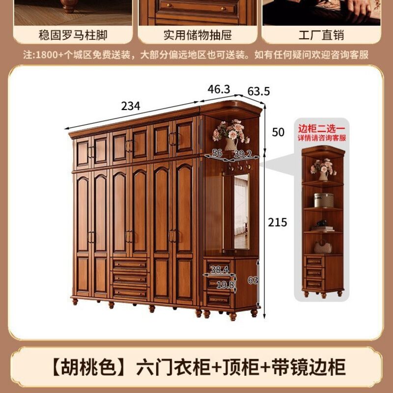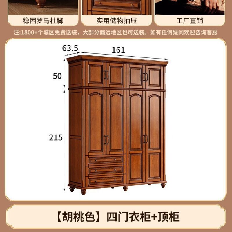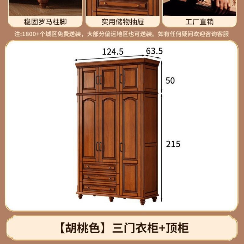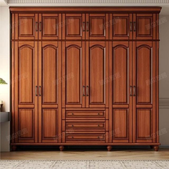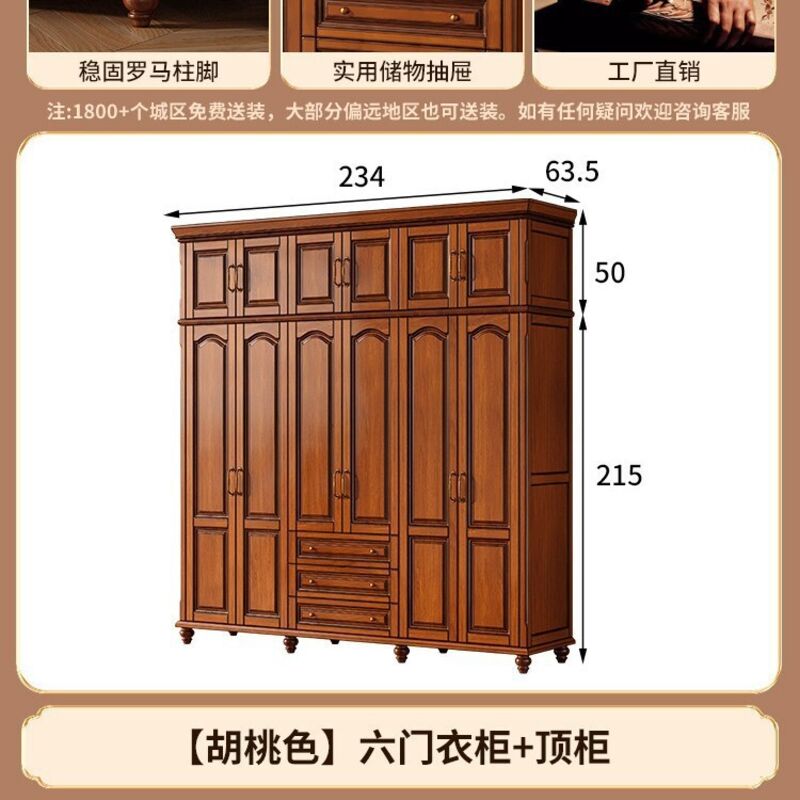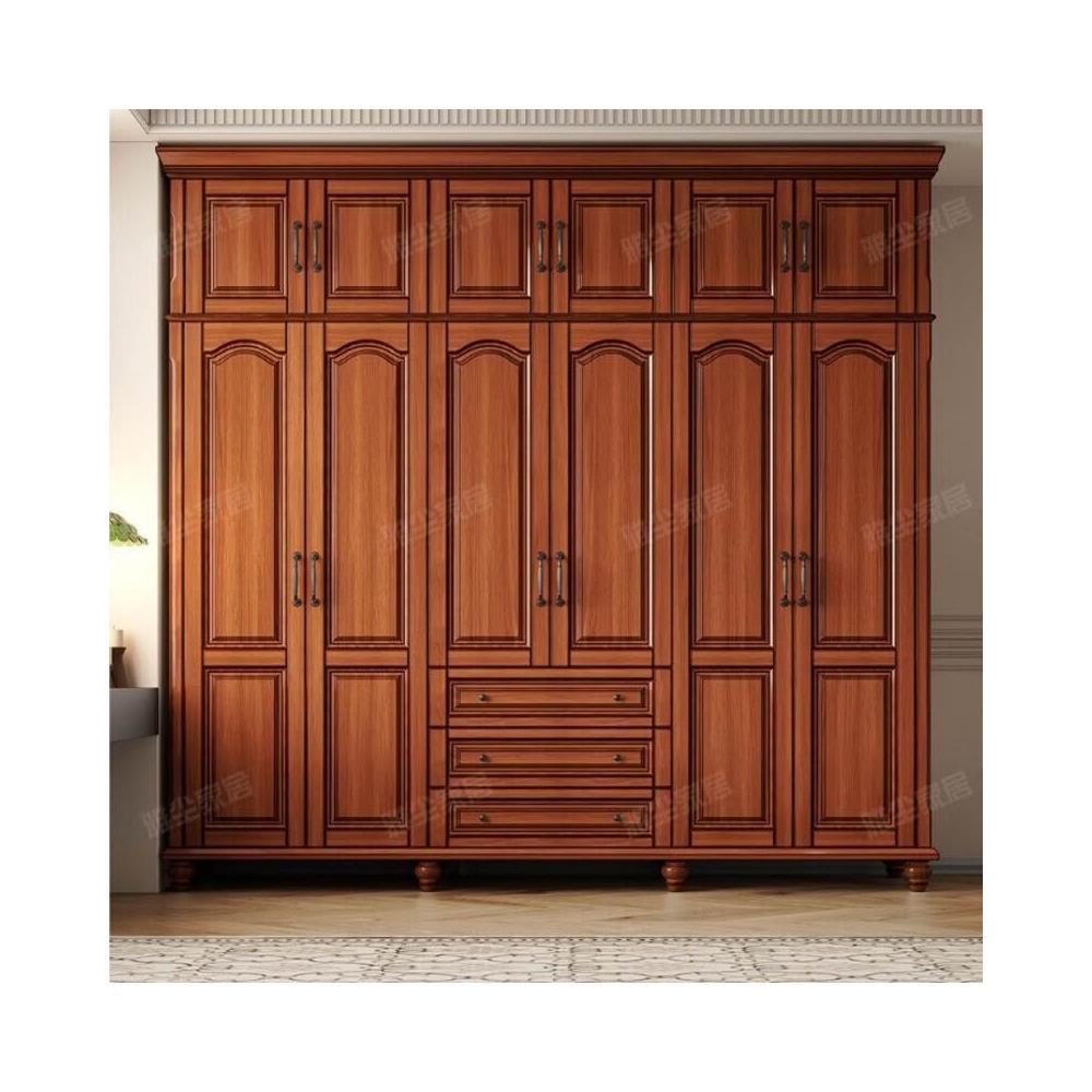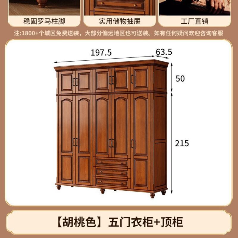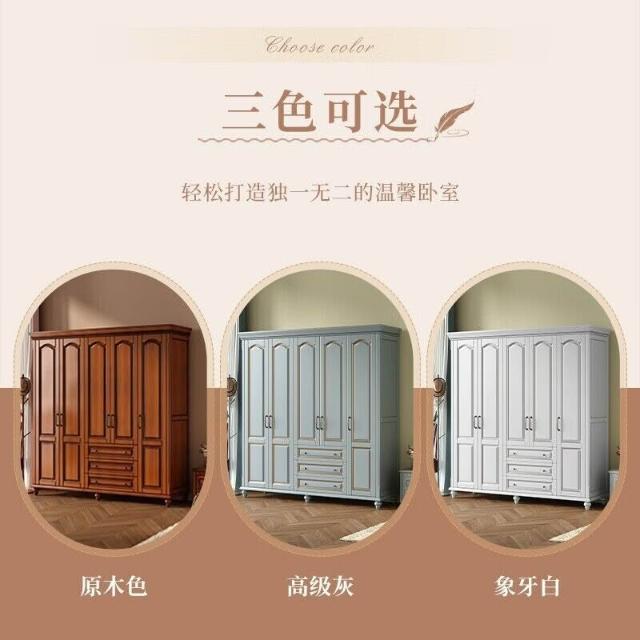 夢之國 美式實木衣櫃臥室家用桃花心木小戶型3456門帶頂櫃儲物大衣櫥
