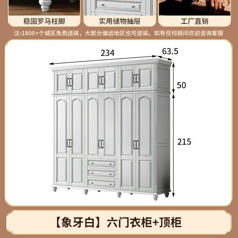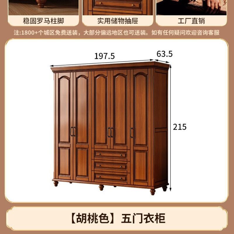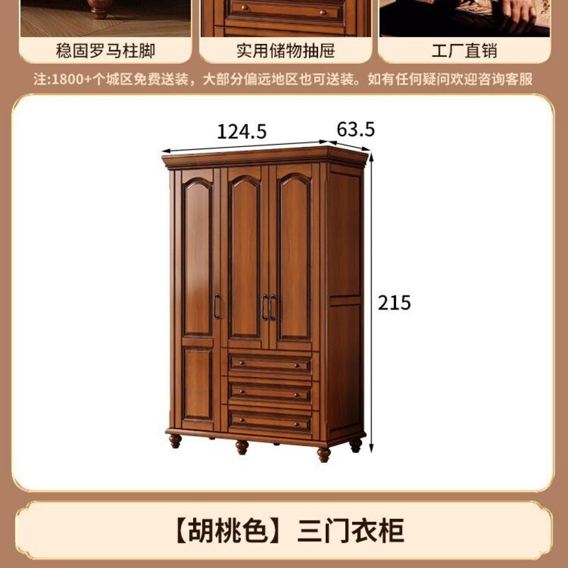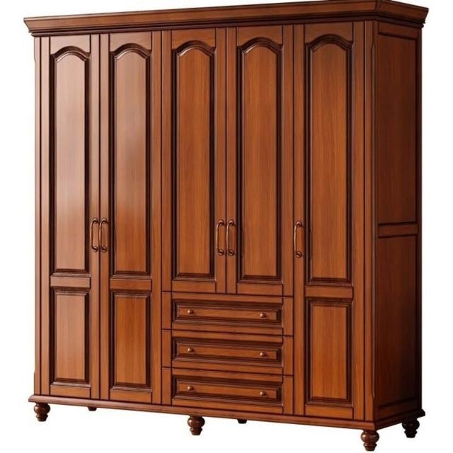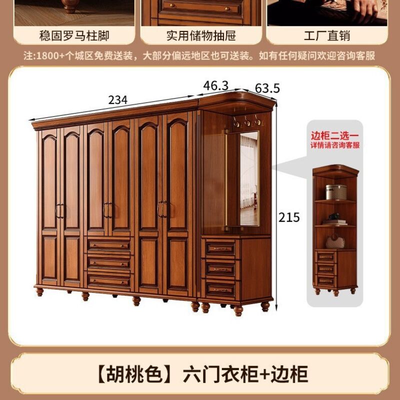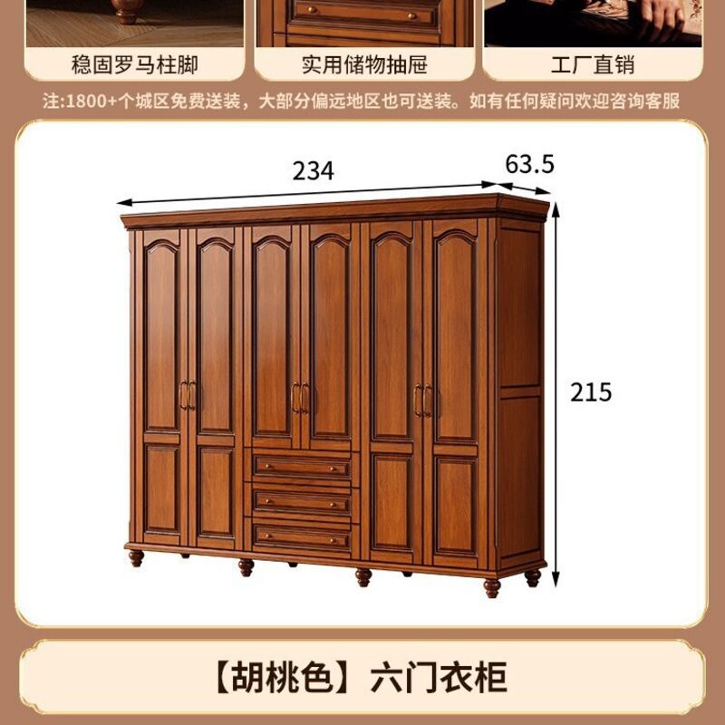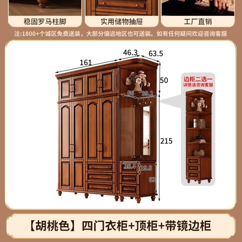 夢之國 美式實木衣櫃臥室家用桃花心木小戶型3456門帶頂櫃儲物大衣櫥