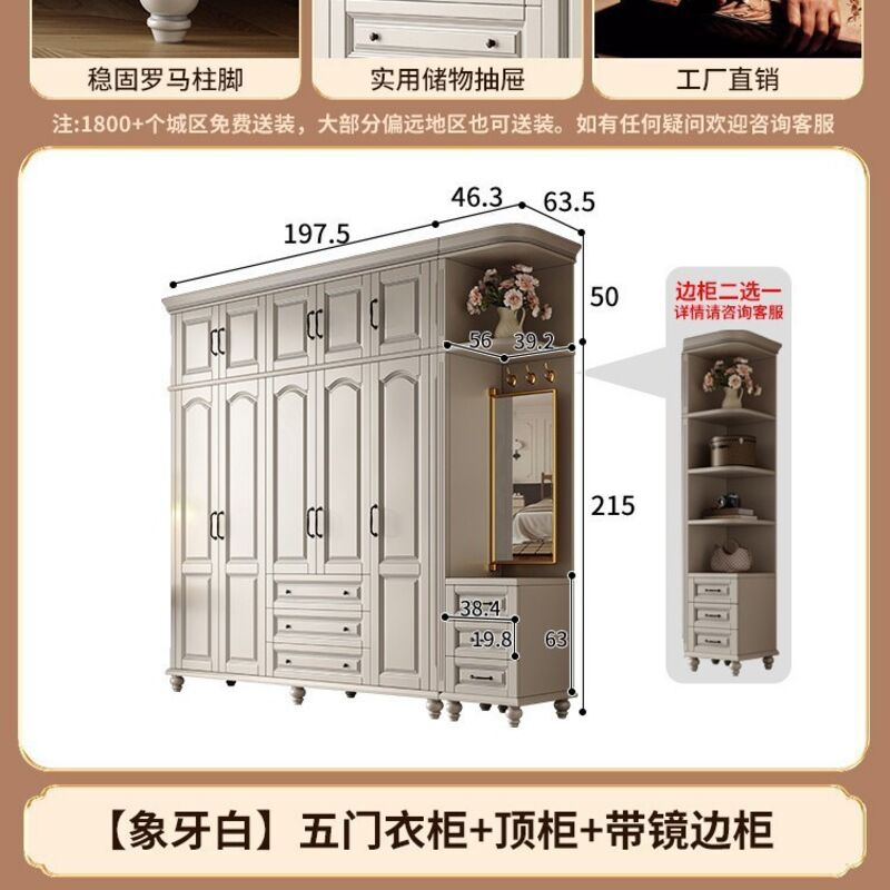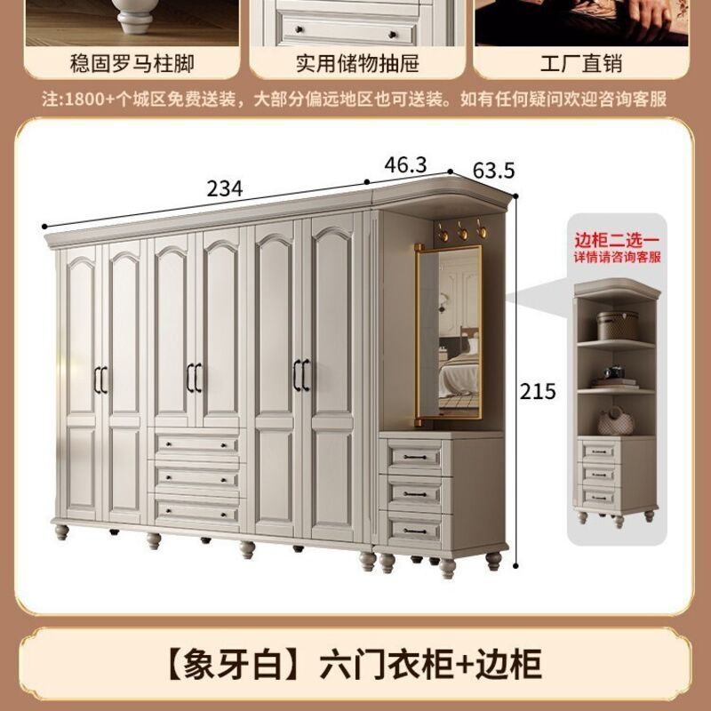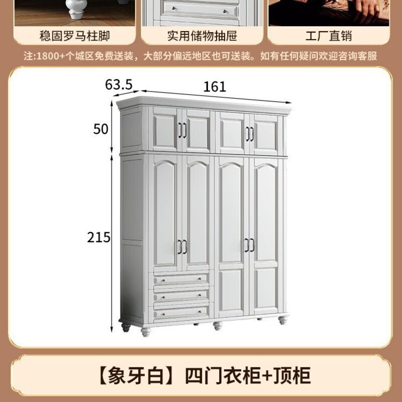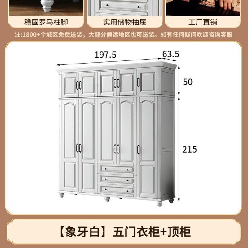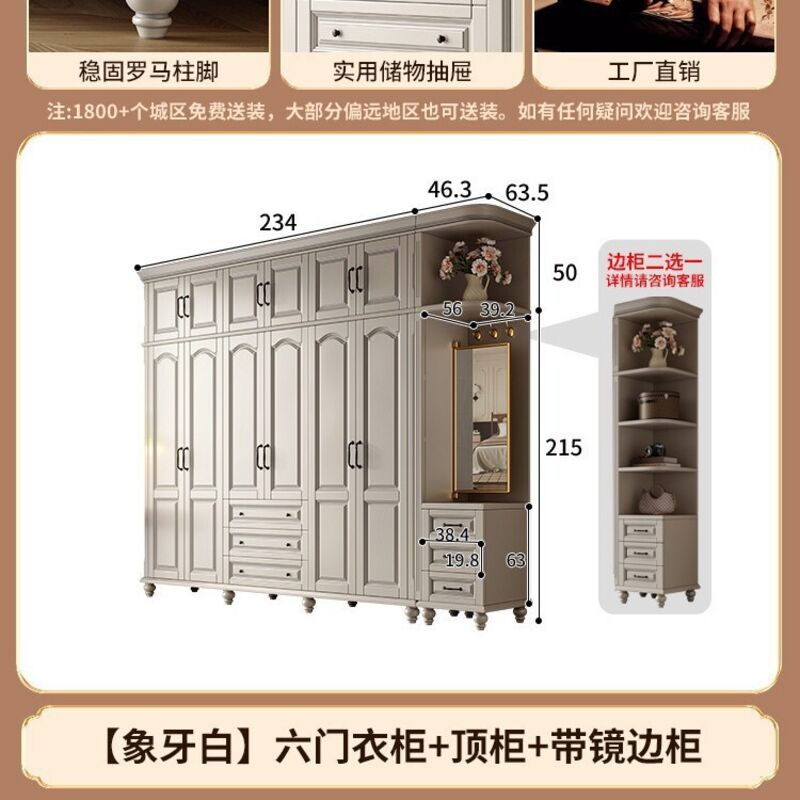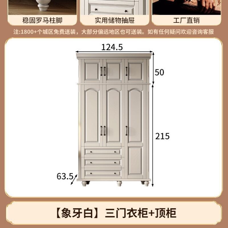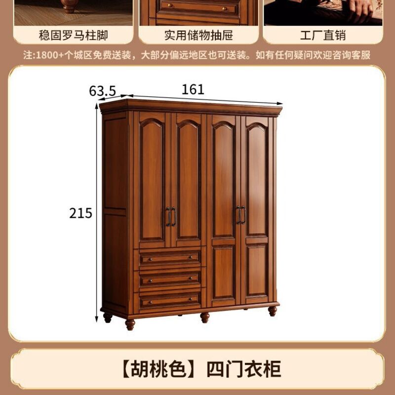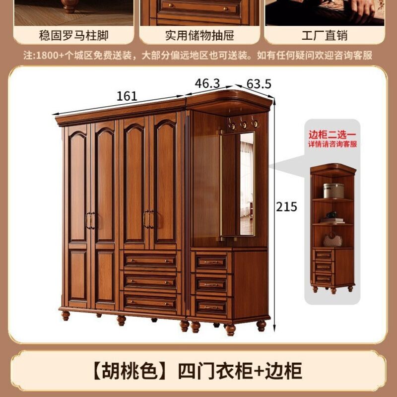 夢之國 美式實木衣櫃臥室家用桃花心木小戶型3456門帶頂櫃儲物大衣櫥