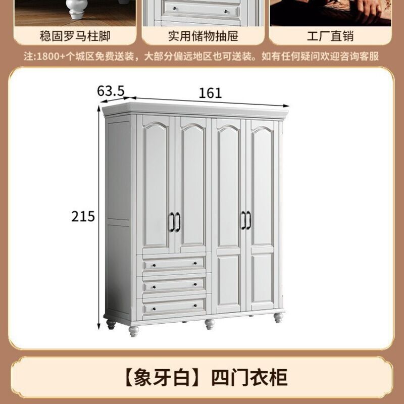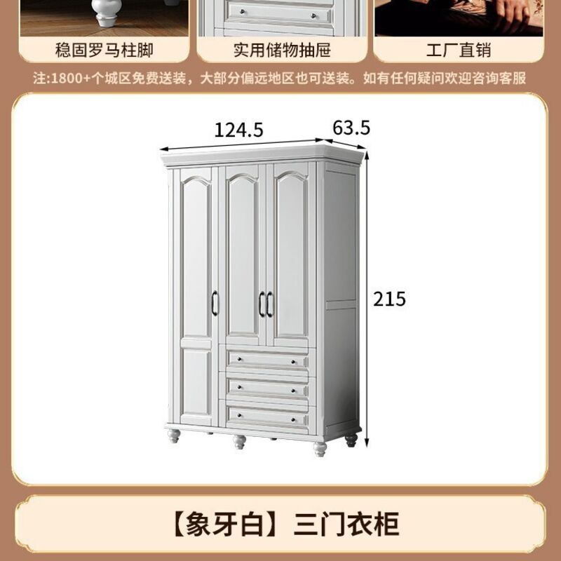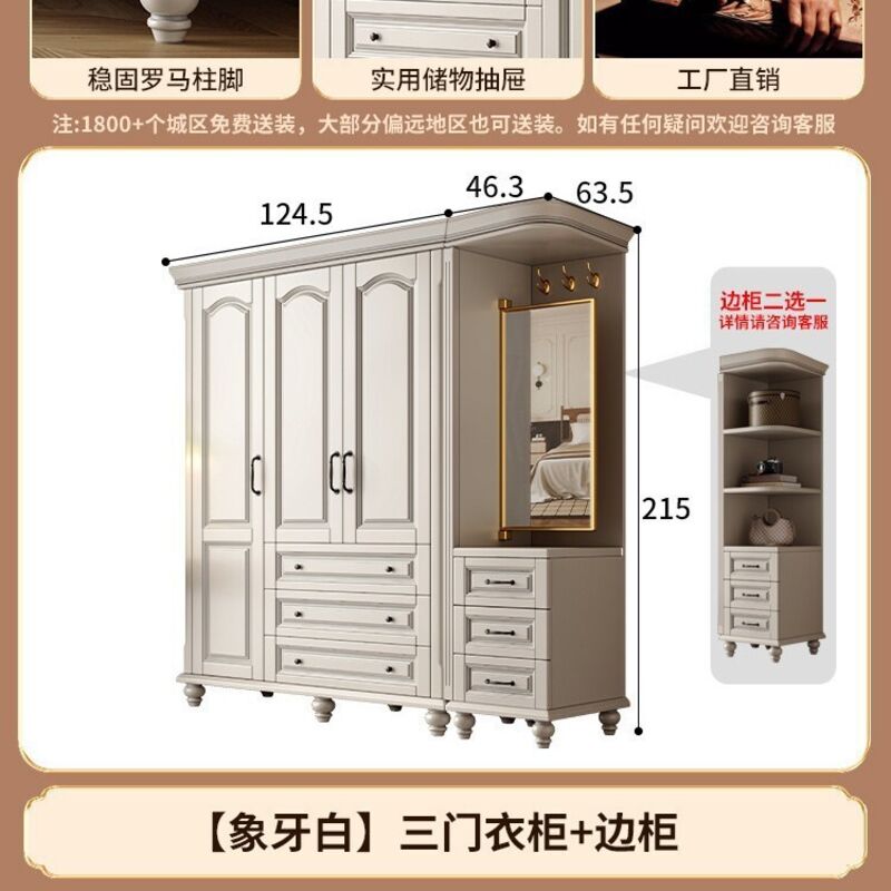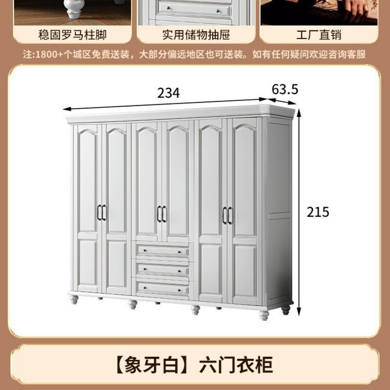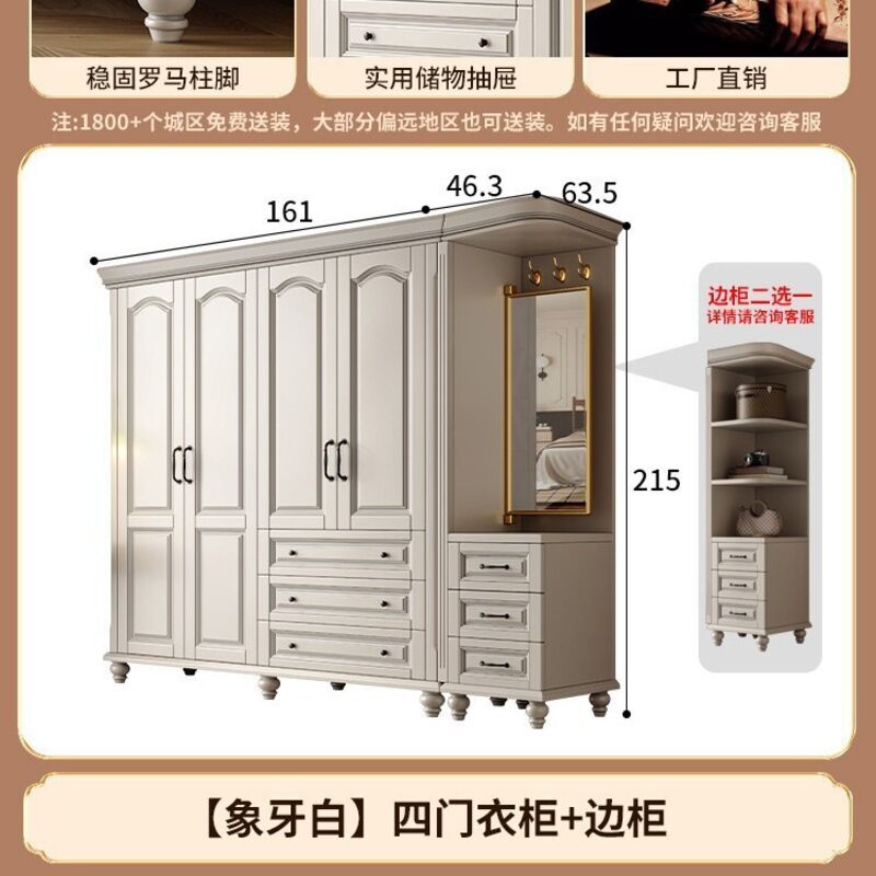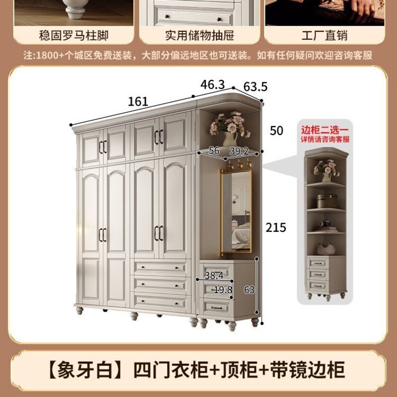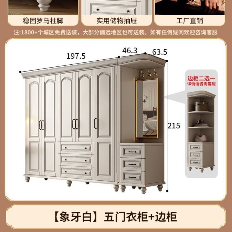 夢之國 美式實木衣櫃臥室家用桃花心木小戶型3456門帶頂櫃儲物大衣櫥