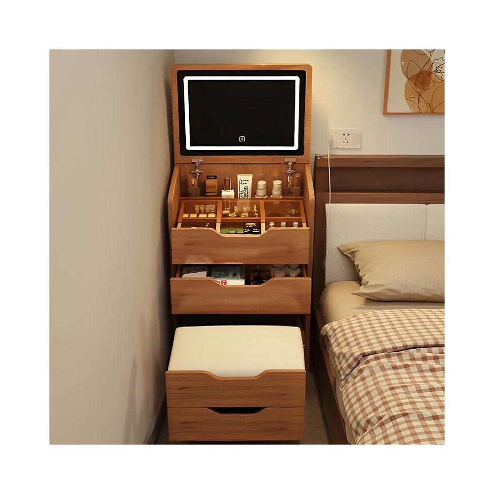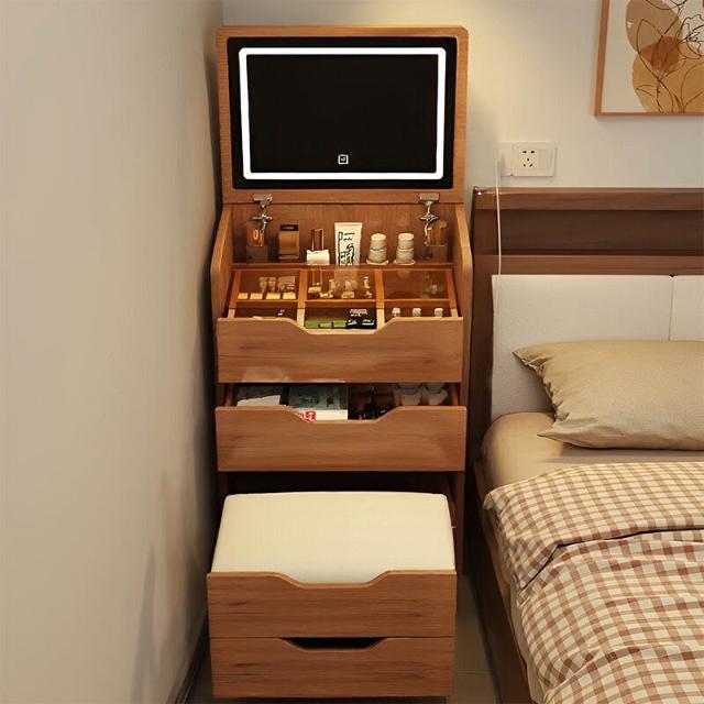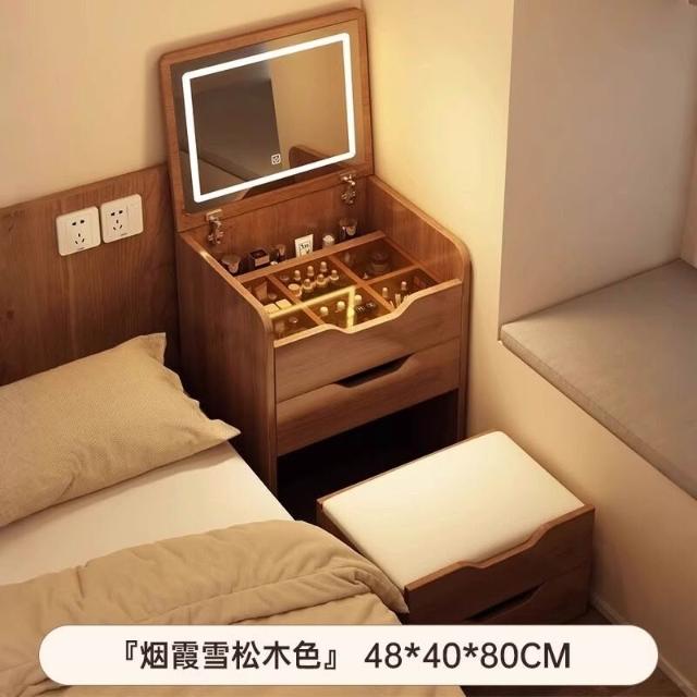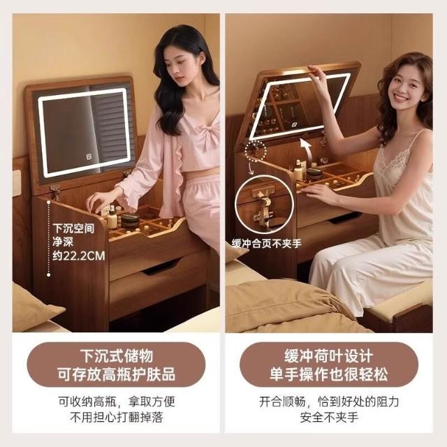 夢之國 實木梳妝臺小戶型臥室家用中古風化妝桌子簡約翻蓋收納櫃一體書桌