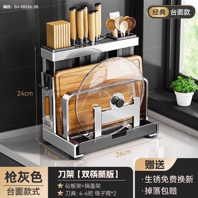 刀架置物架多功能廚房筷籠一體砧板磁吸刀具收納架菜刀臺面菜板架 4be