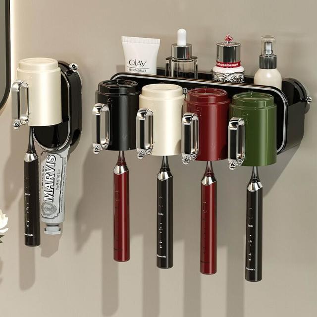 吸盤牙刷置物架壁掛式刷牙漱口杯收納架衛生間免打孔牙膏牙刷架子 cd4