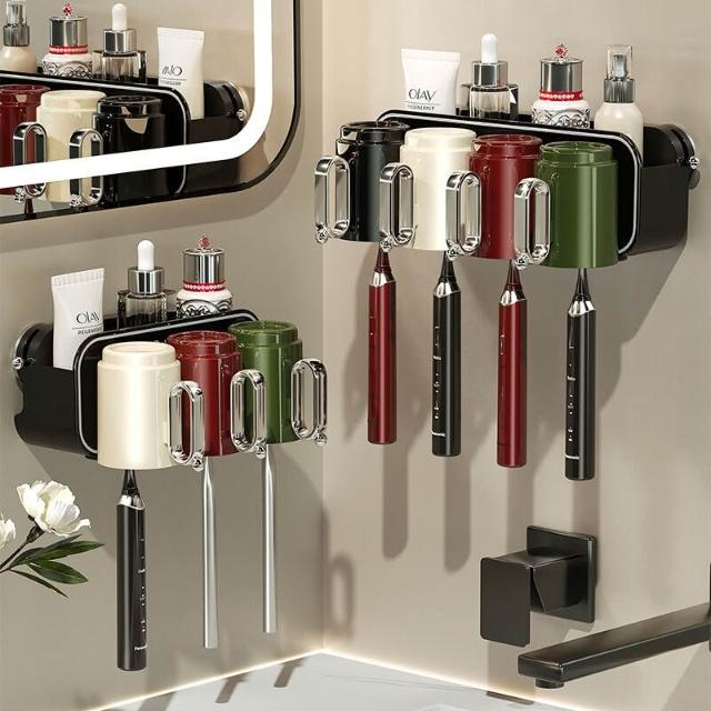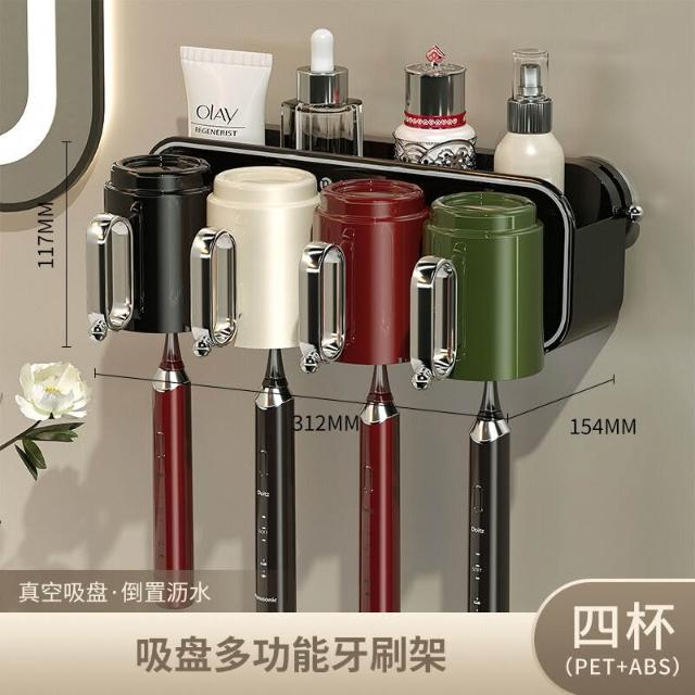 吸盤牙刷置物架壁掛式刷牙漱口杯收納架衛生間免打孔牙膏牙刷架子 cd4
