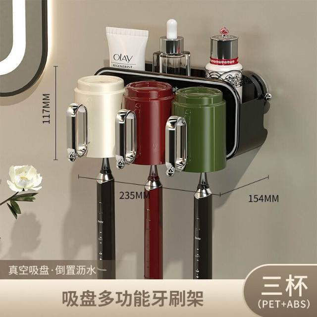 吸盤牙刷置物架壁掛式刷牙漱口杯收納架衛生間免打孔牙膏牙刷架子 cd4