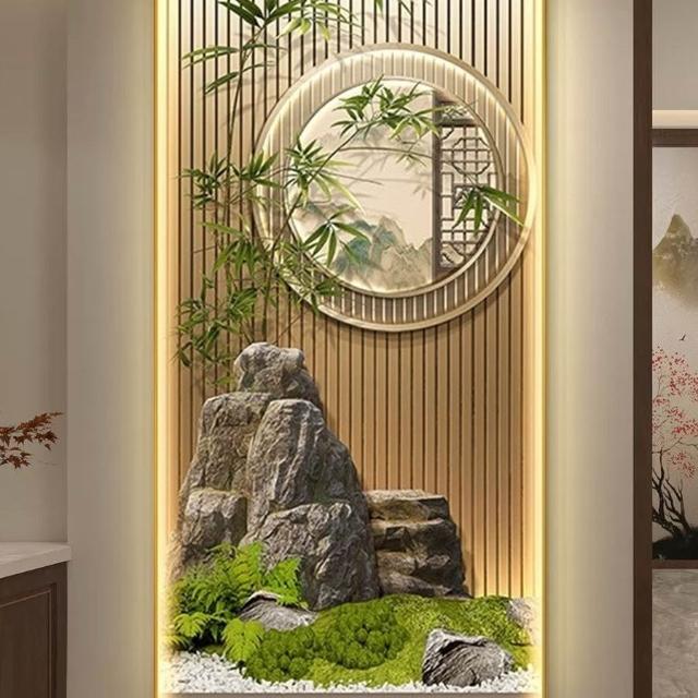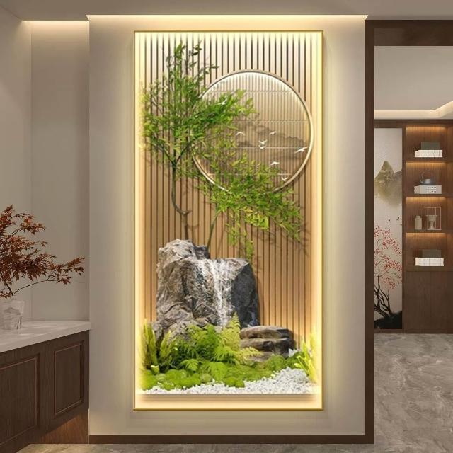 夢之國❤️ 節節高升入戶玄關裝飾畫竹子led帶燈新中式山水風景走廊過道掛畫 152