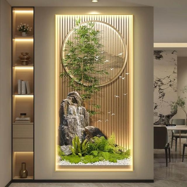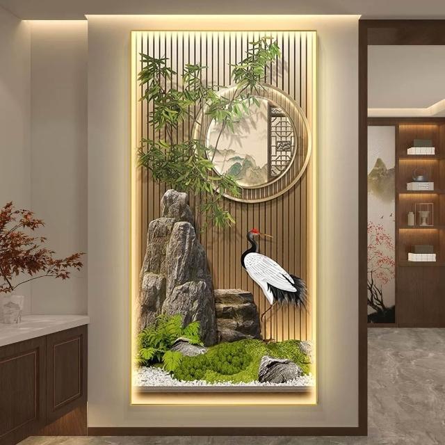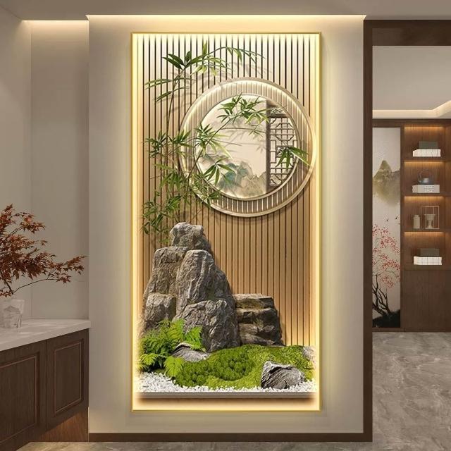 夢之國❤️ 節節高升入戶玄關裝飾畫竹子led帶燈新中式山水風景走廊過道掛畫 152