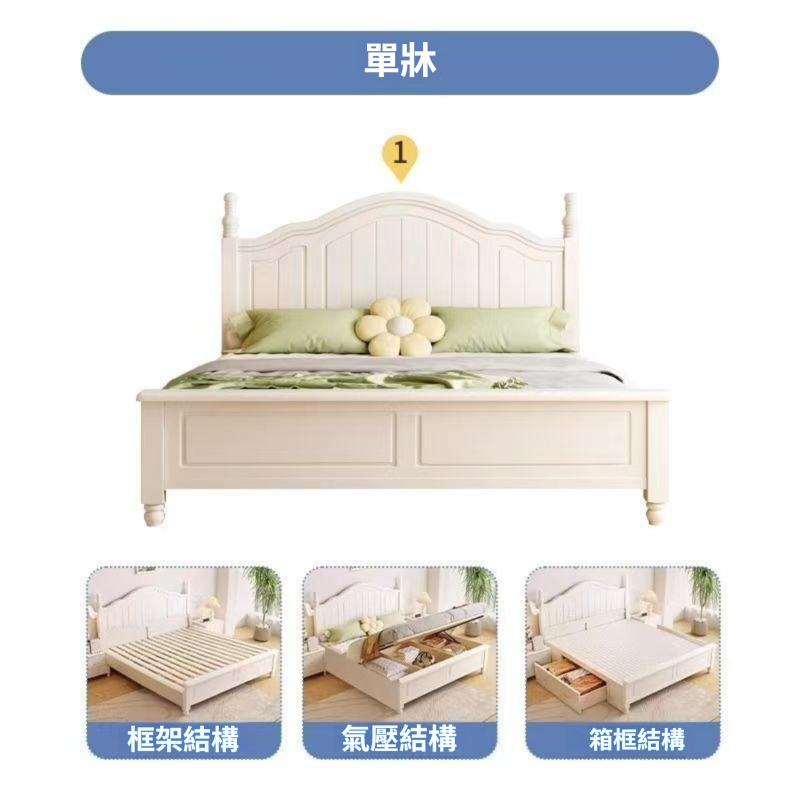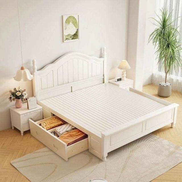 夢之國❤️ 北歐白色奶油風實木床現代簡約1.8雙人主臥大床1.2單人床儲物婚床 588