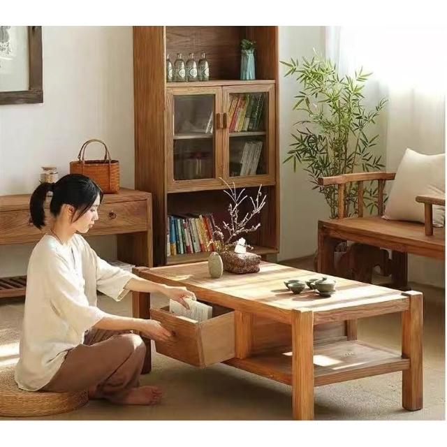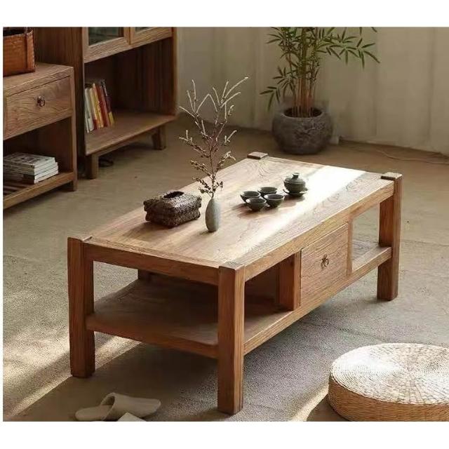 日式老榆木茶桌客廳小茶几泡茶臺實木長方形茶桌風化老門板茶臺