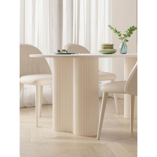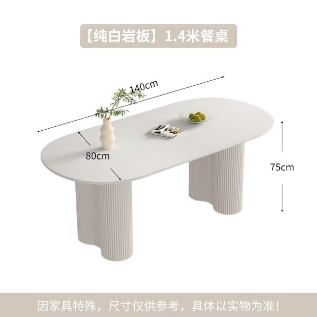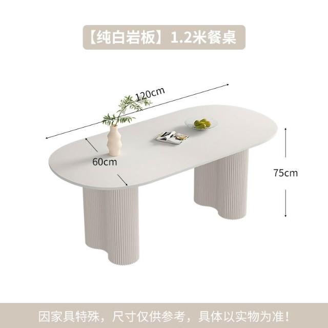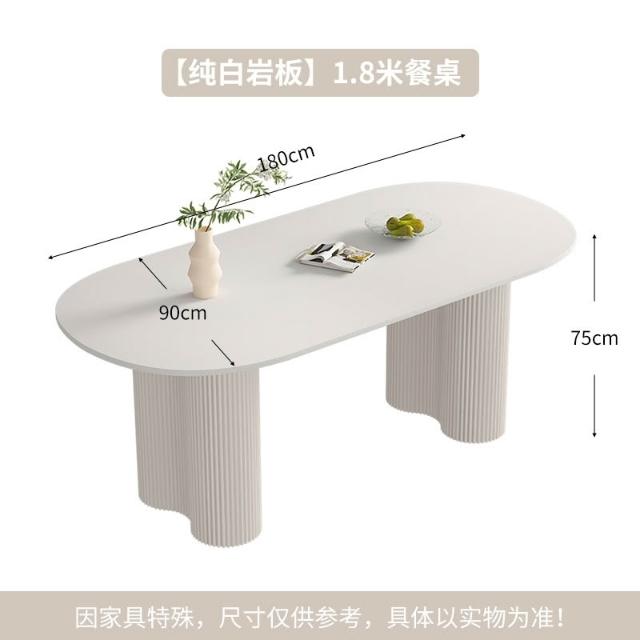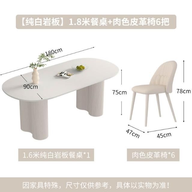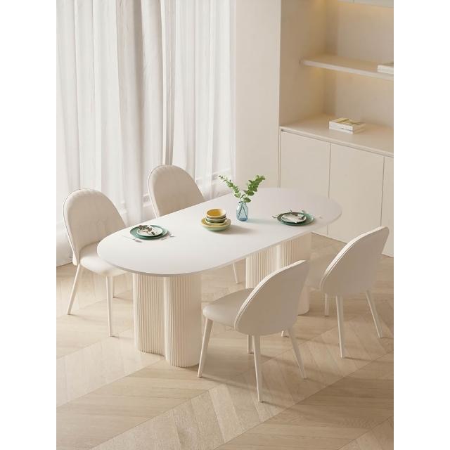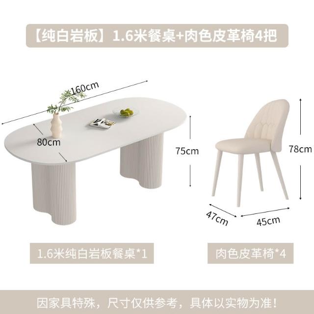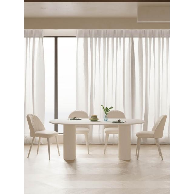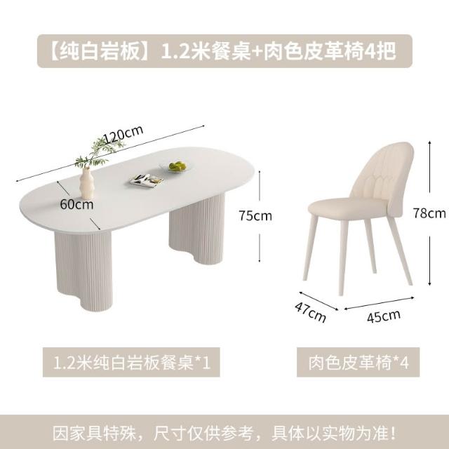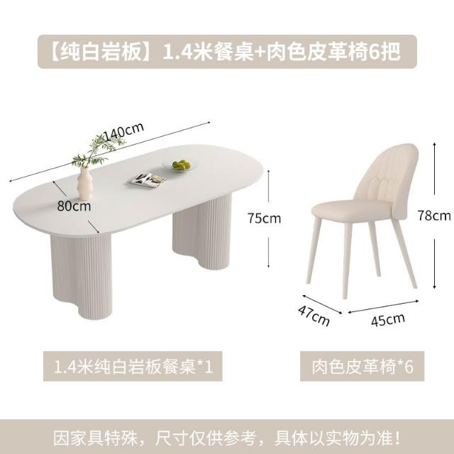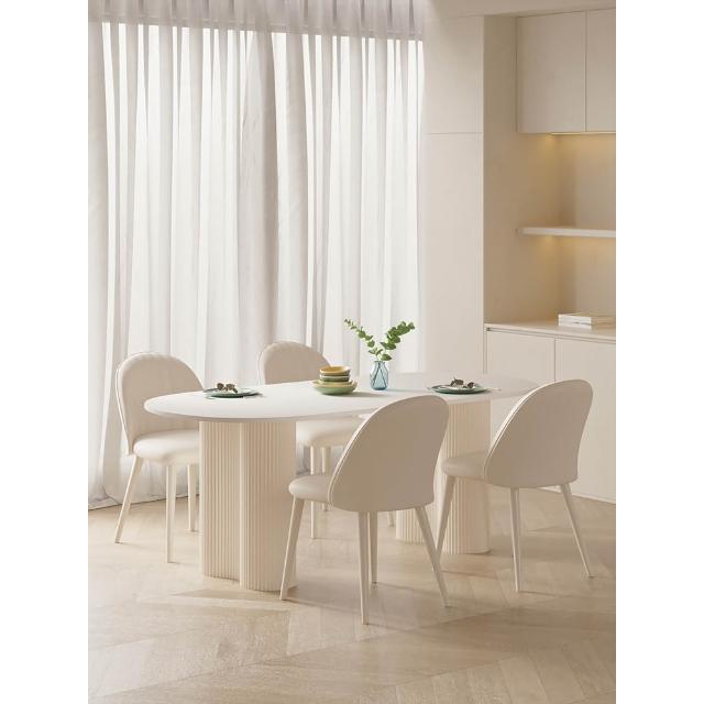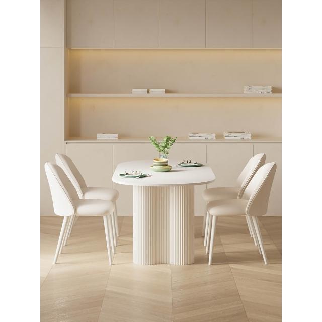 奶油風純白岩板餐桌家用小戶型輕奢現代簡約吃飯桌法式餐桌椅組合