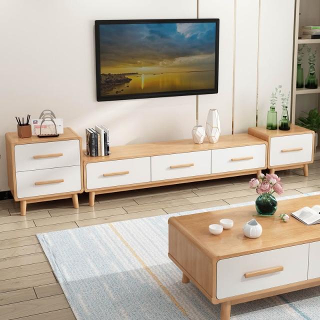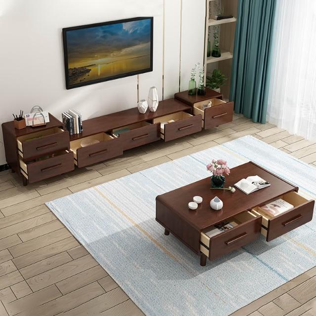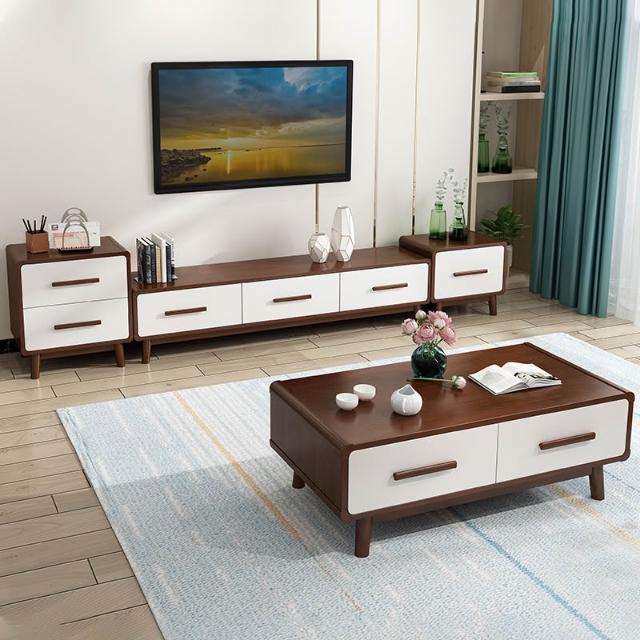 电视柜茶几组合套装实木客厅储物柜子北欧现代简约小户型地柜家具