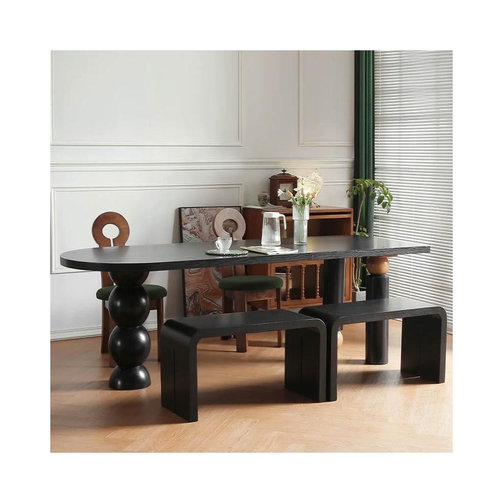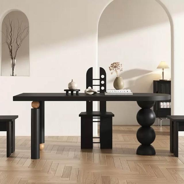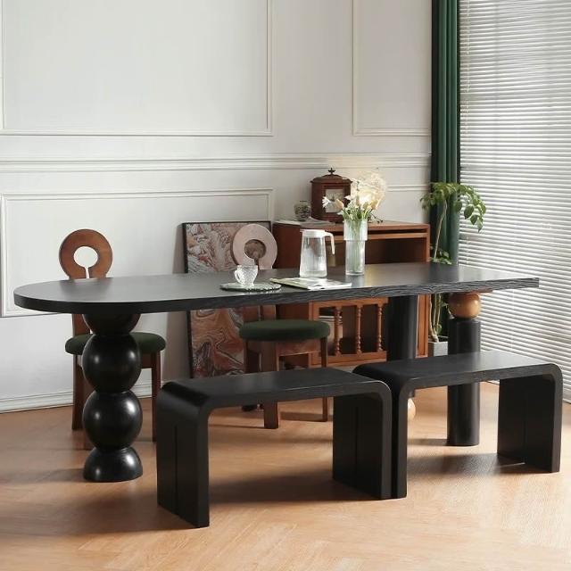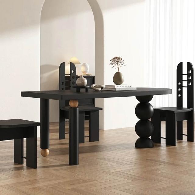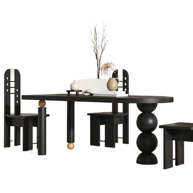 黑色法式復古小戶型侘寂風中古實木餐桌椅子組合家用長方形島臺桌