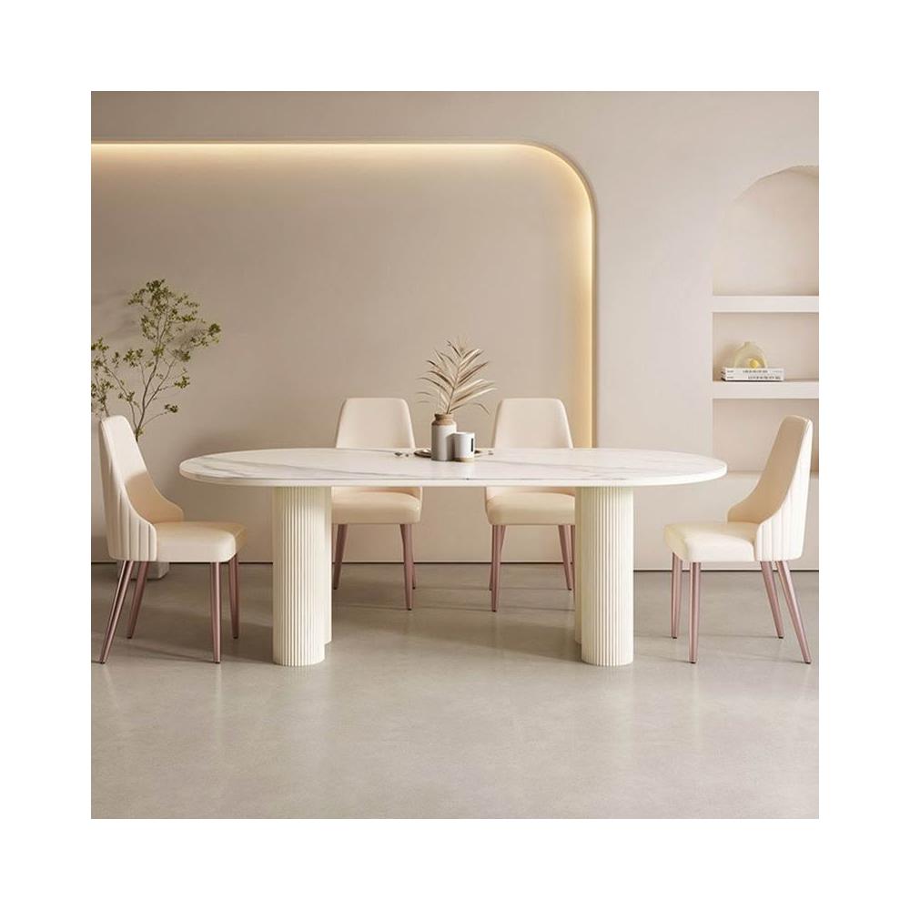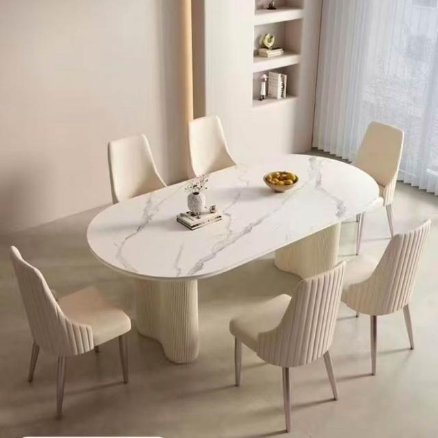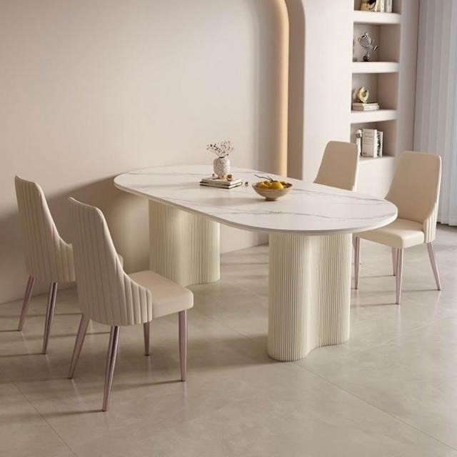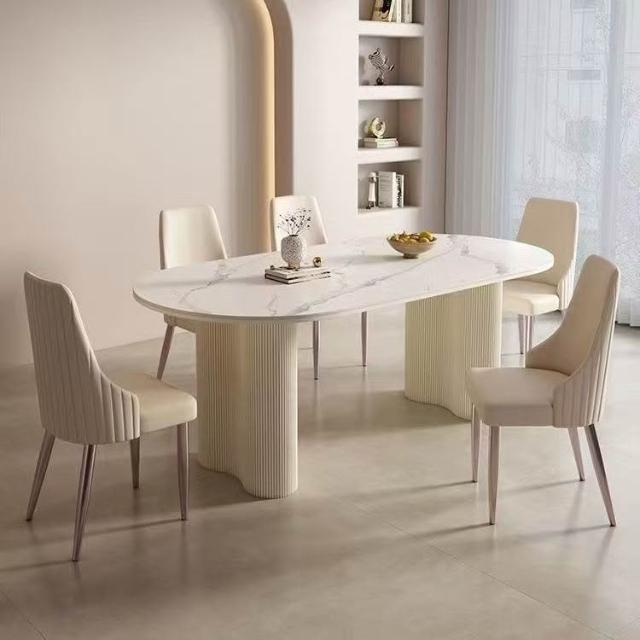 含稅免運 破損包賠 奶油風餐桌 輕奢餐桌 岩板餐桌 純白北歐餐桌 網紅小戶型餐桌 橢圓形餐桌 家用餐桌椅組合