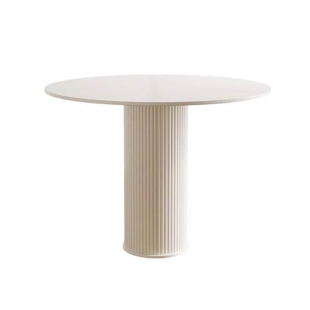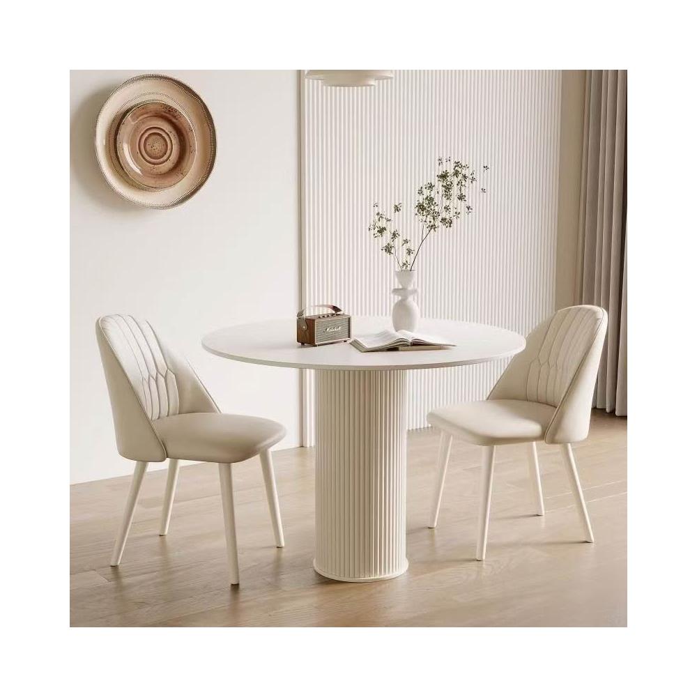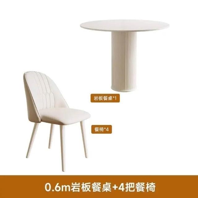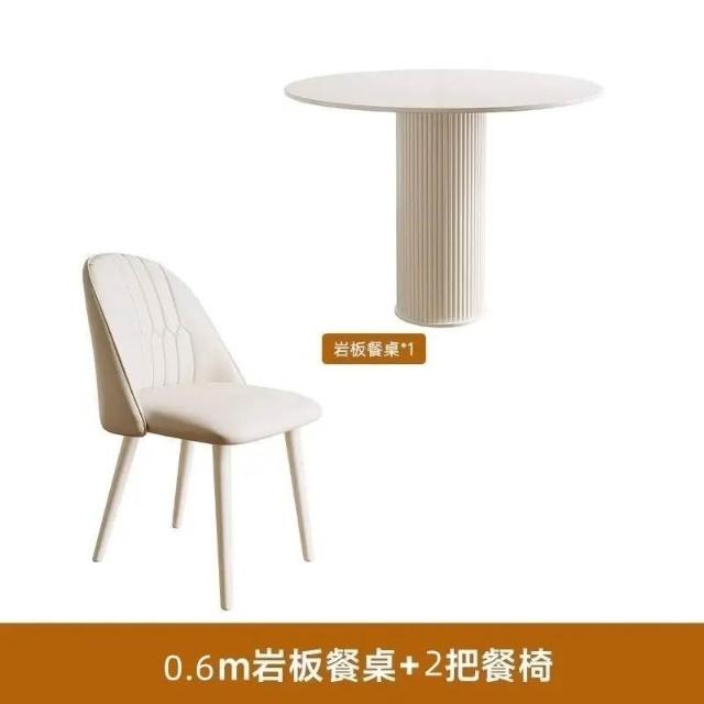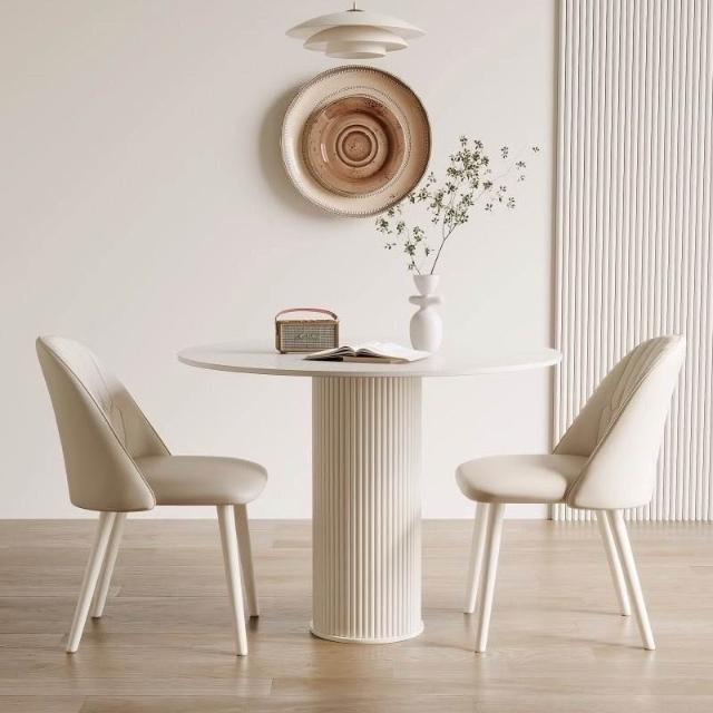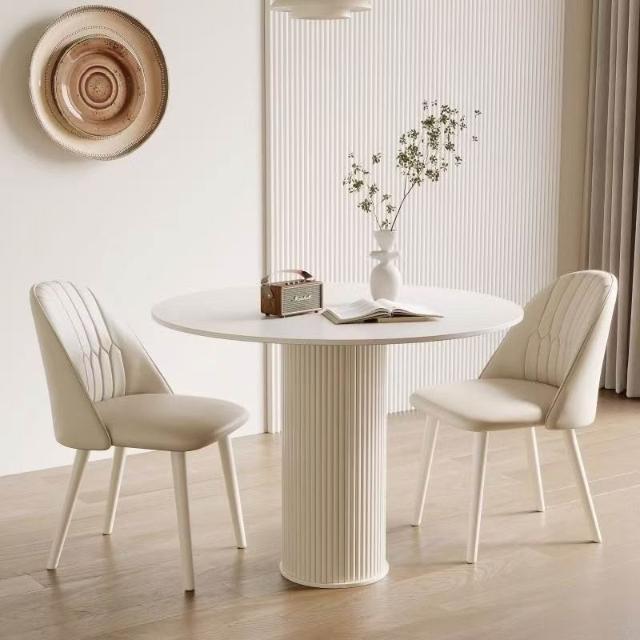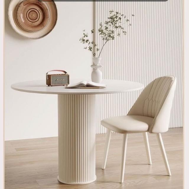 奶油風圓形餐桌家用小戶型岩板洽談桌椅組合現代簡約羅馬柱圓桌子