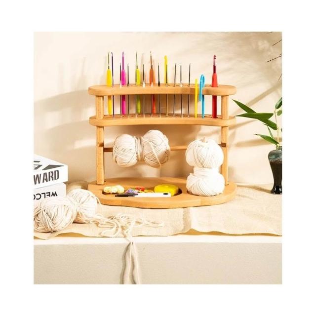 木質桌面 兩個 置物架 鉤針編織 毛線串珠線多層 收納架 客廳ins實木整理架