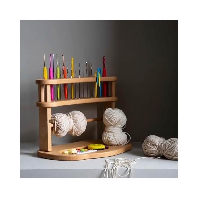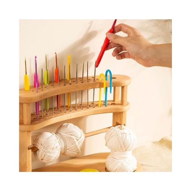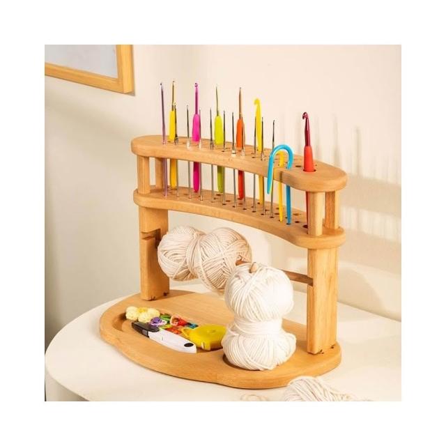 木質桌面 兩個 置物架 鉤針編織 毛線串珠線多層 收納架 客廳ins實木整理架