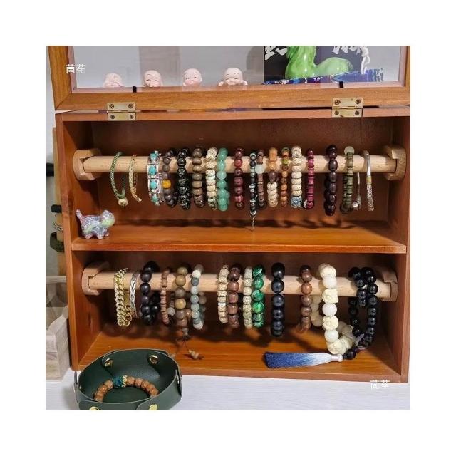 含稅免運 破損包賠 手串收納盒 桌面復古雙層 實木首飾櫃 防塵珠寶文玩 水晶手鏈展示架子 翡翠手鐲收納櫃 桌上雙層收納盒