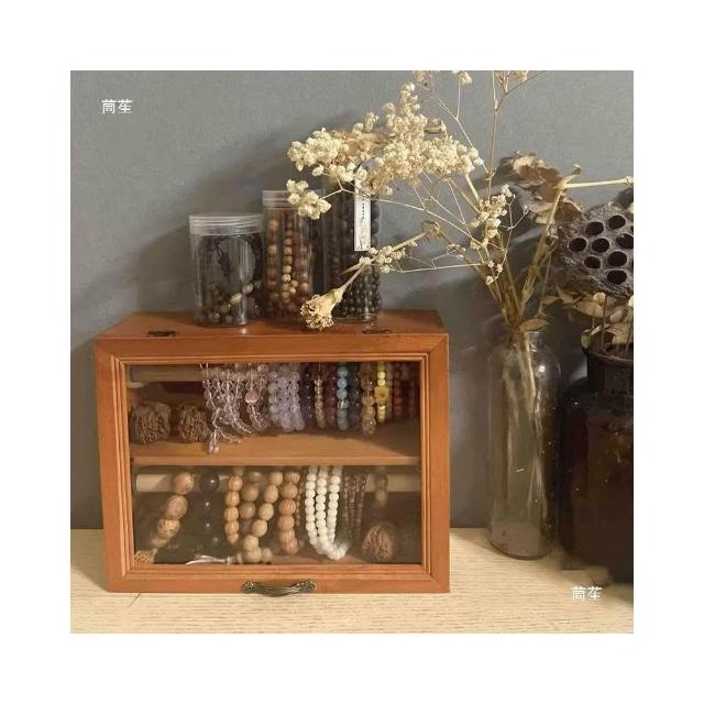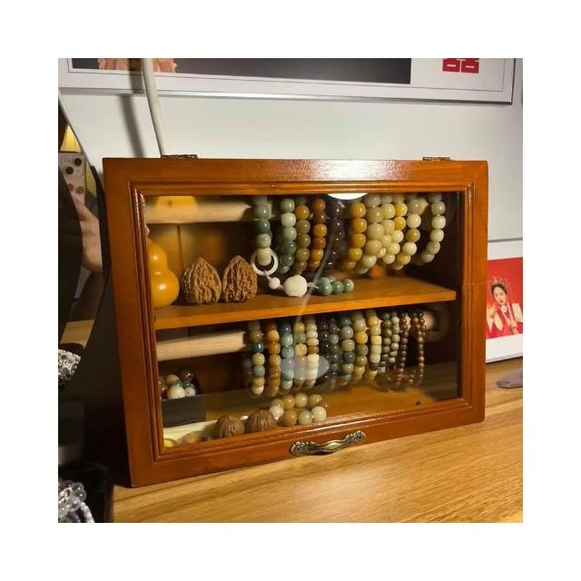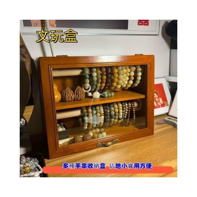 含稅免運 破損包賠 手串收納盒 桌面復古雙層 實木首飾櫃 防塵珠寶文玩 水晶手鏈展示架子 翡翠手鐲收納櫃 桌上雙層收納盒