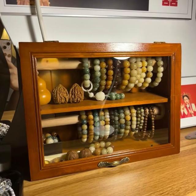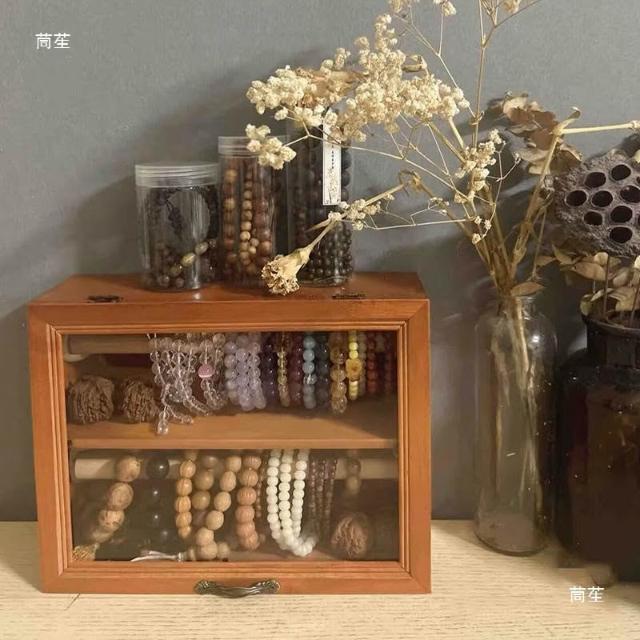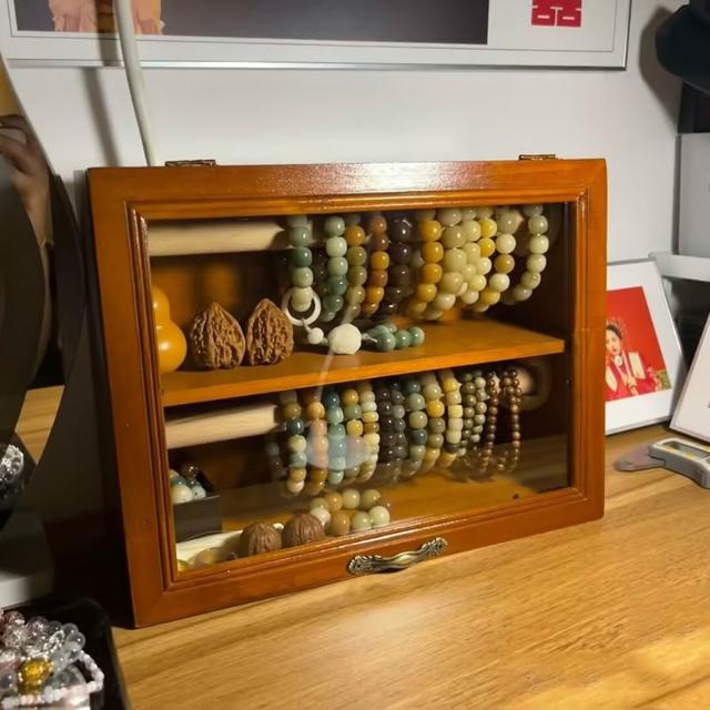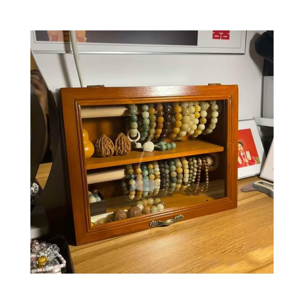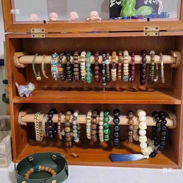 手串收納盒桌面復古雙層實木首飾櫃防塵珠寶文玩水晶手鏈展示架子