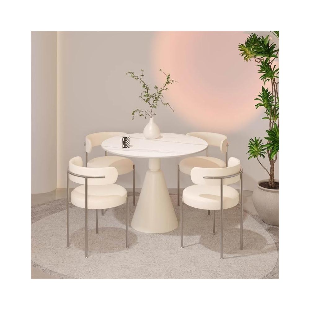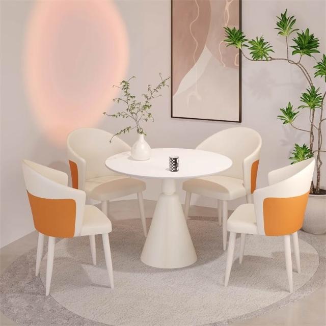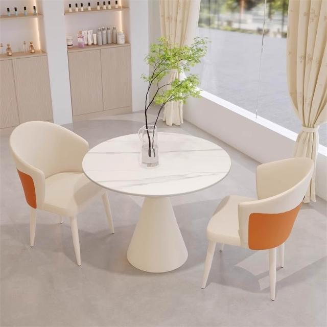 奶油風岩板圓形餐桌店鋪商務會客接待洽談桌椅現代簡約小戶型桌子