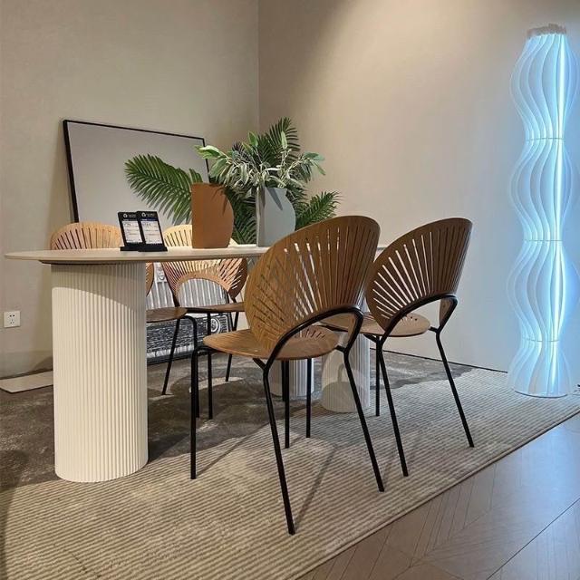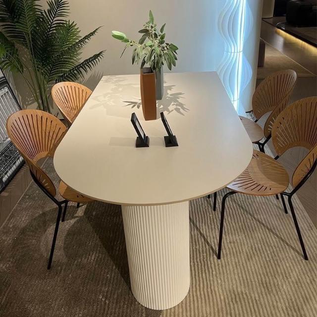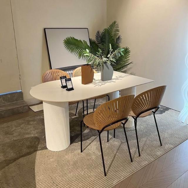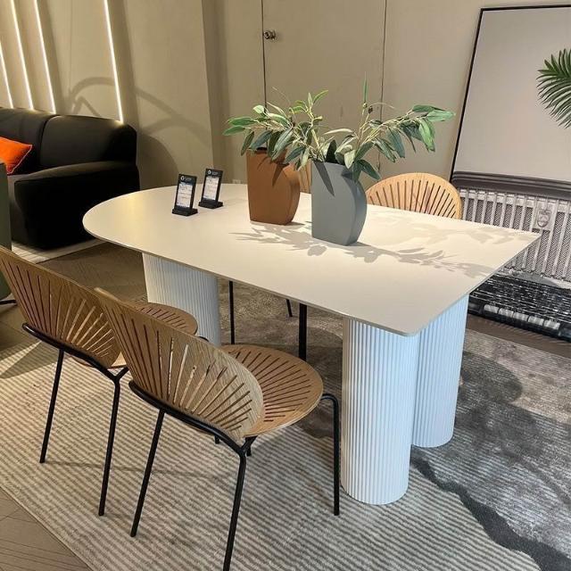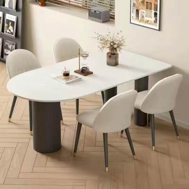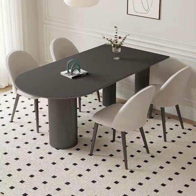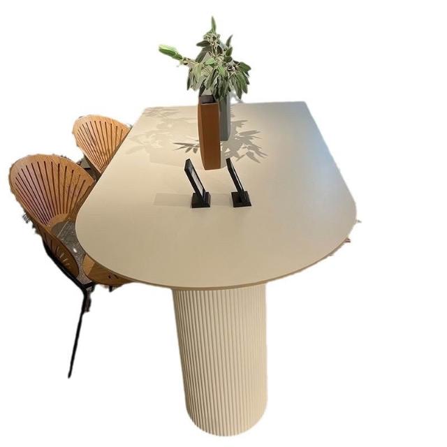 法式奶油風半島臺岩板餐桌現代簡約橢圓形家用飯桌子2023網紅新款