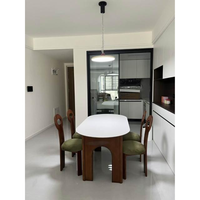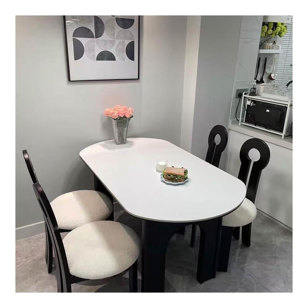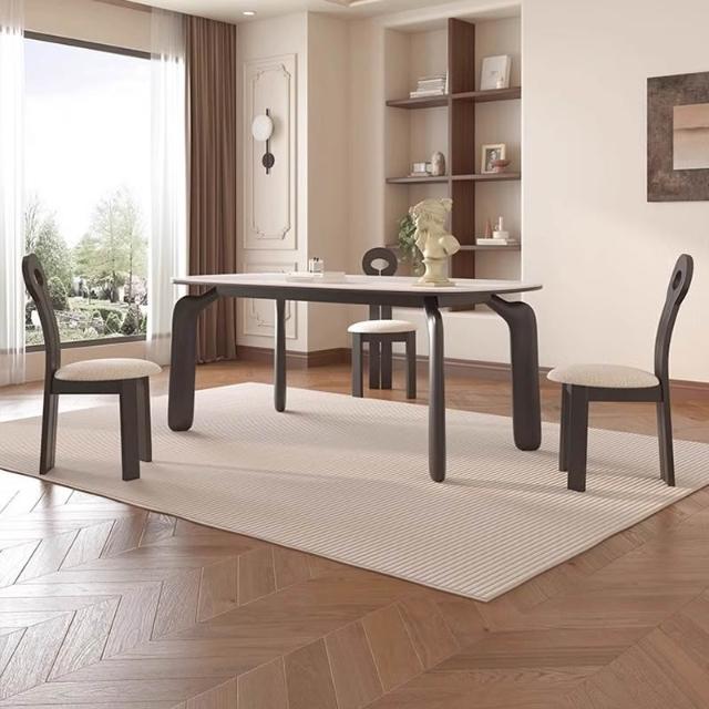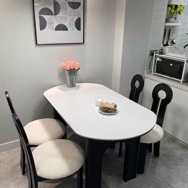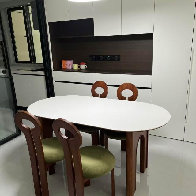 佛山法式復古岩板餐桌椅子椅組合家用白蠟木橢圓形奶油風岩板飯桌