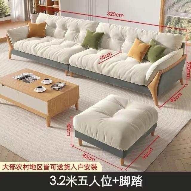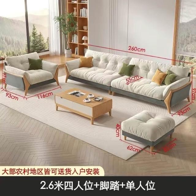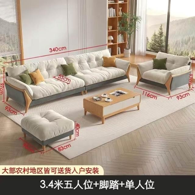 日式原木风云朵直排沙发客厅大小户型现代简约爆款可拆洗布艺沙发