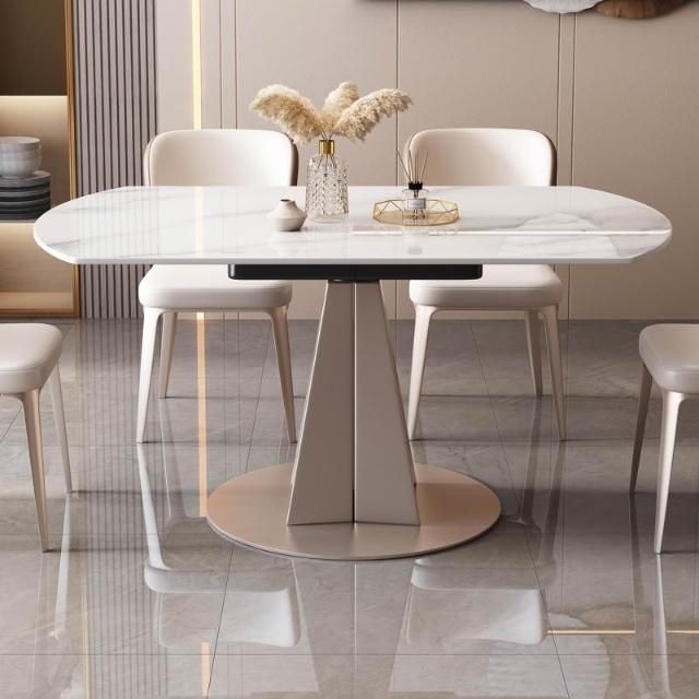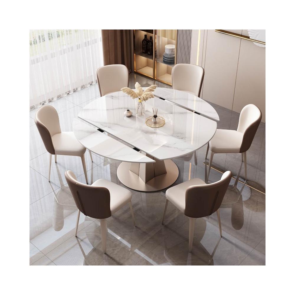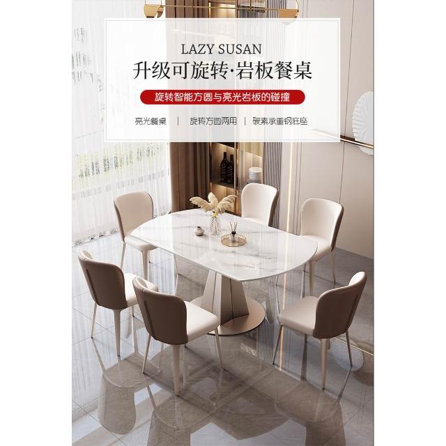 岩板餐桌椅組合現代簡約輕奢家用大小戶型客廳圓桌帶轉盤亮光岩板