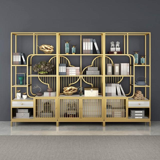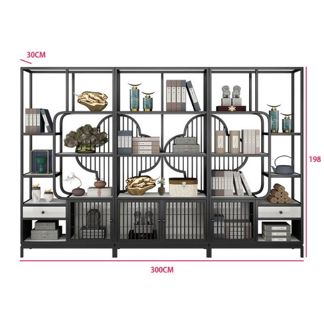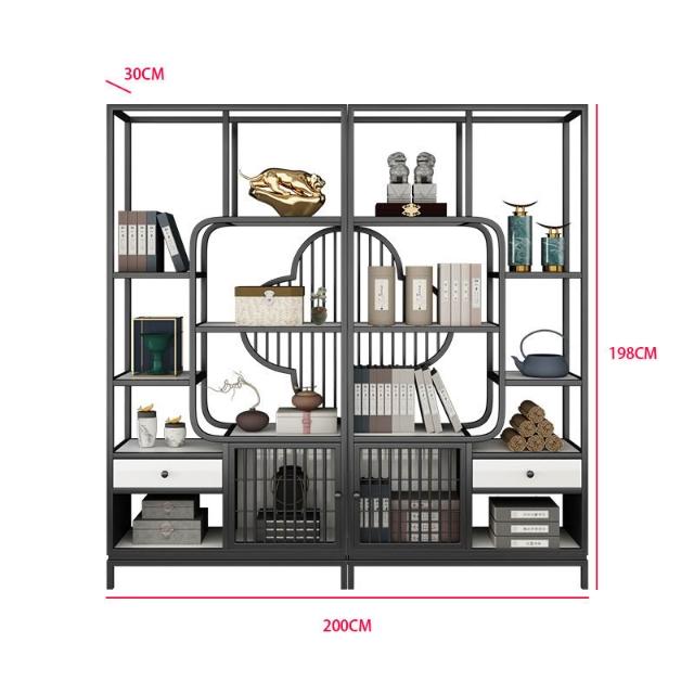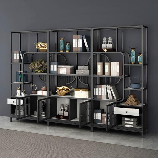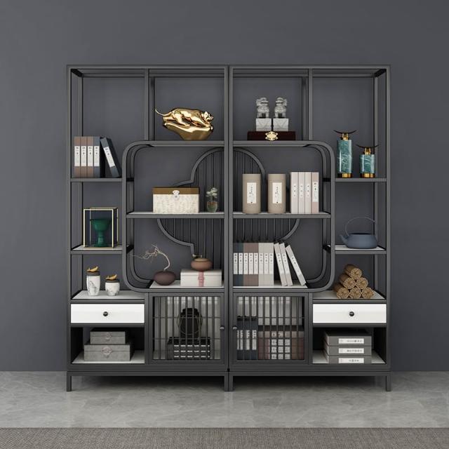 新中式梅花博古架客廳組合輕奢風辦公室置物架書架茶葉展示架鐵藝