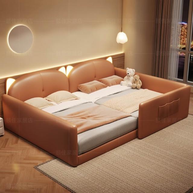 親子床一家四口加寬拼接床二胎家庭床榻榻米皮床現代簡約主臥大床