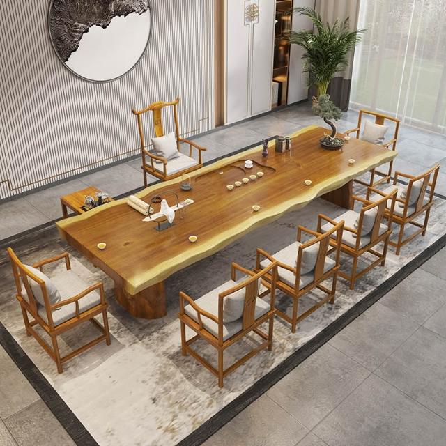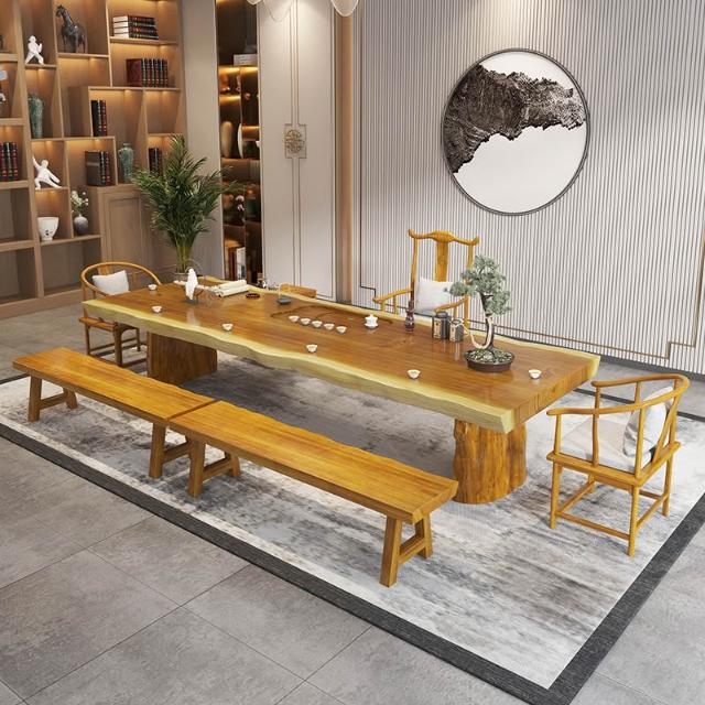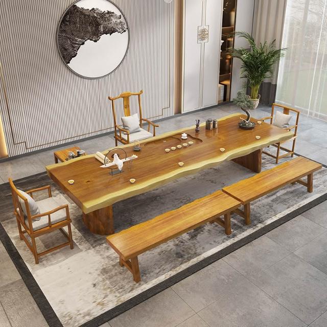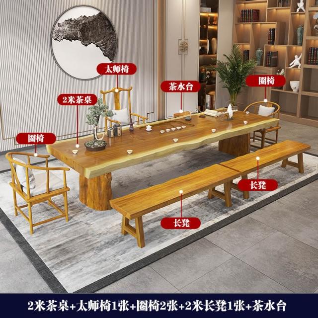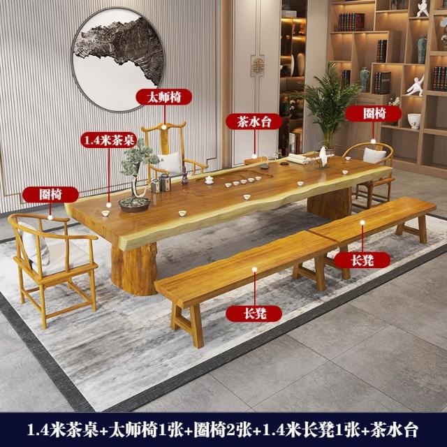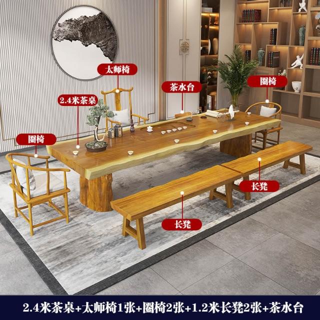 實木大板茶桌椅組合新中式功夫茶臺原木辦公室老闆整板禪意泡茶桌