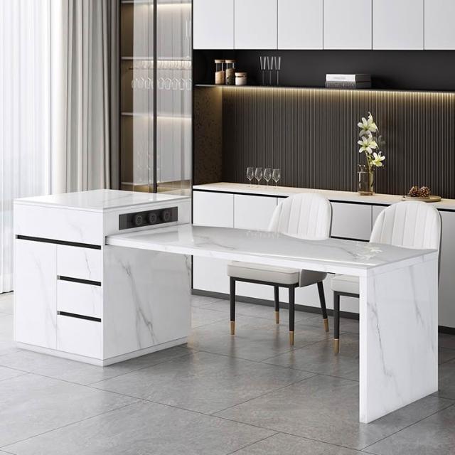 岩板島臺餐桌一體可伸縮開放式廚房輕奢倒臺多功能導臺白色中島臺