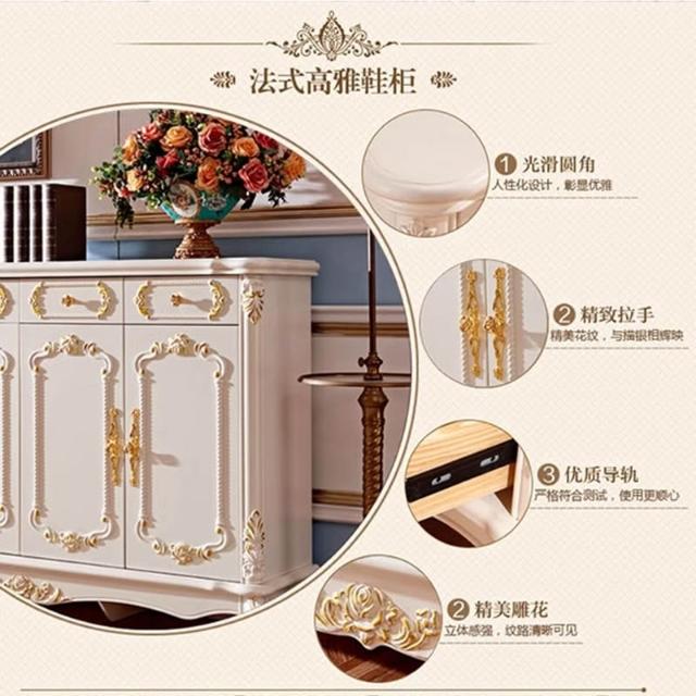 歐式鞋櫃白色實木雕花描金四門鞋櫃門廳櫃玄關櫃客廳大容量儲物櫃